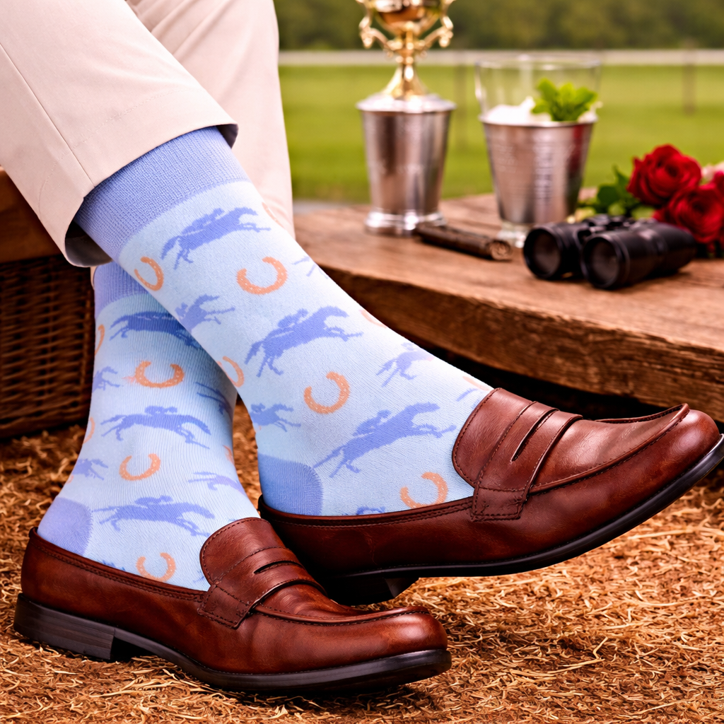 Coral/Blue Fast Horses and Good Bourbon Socks
