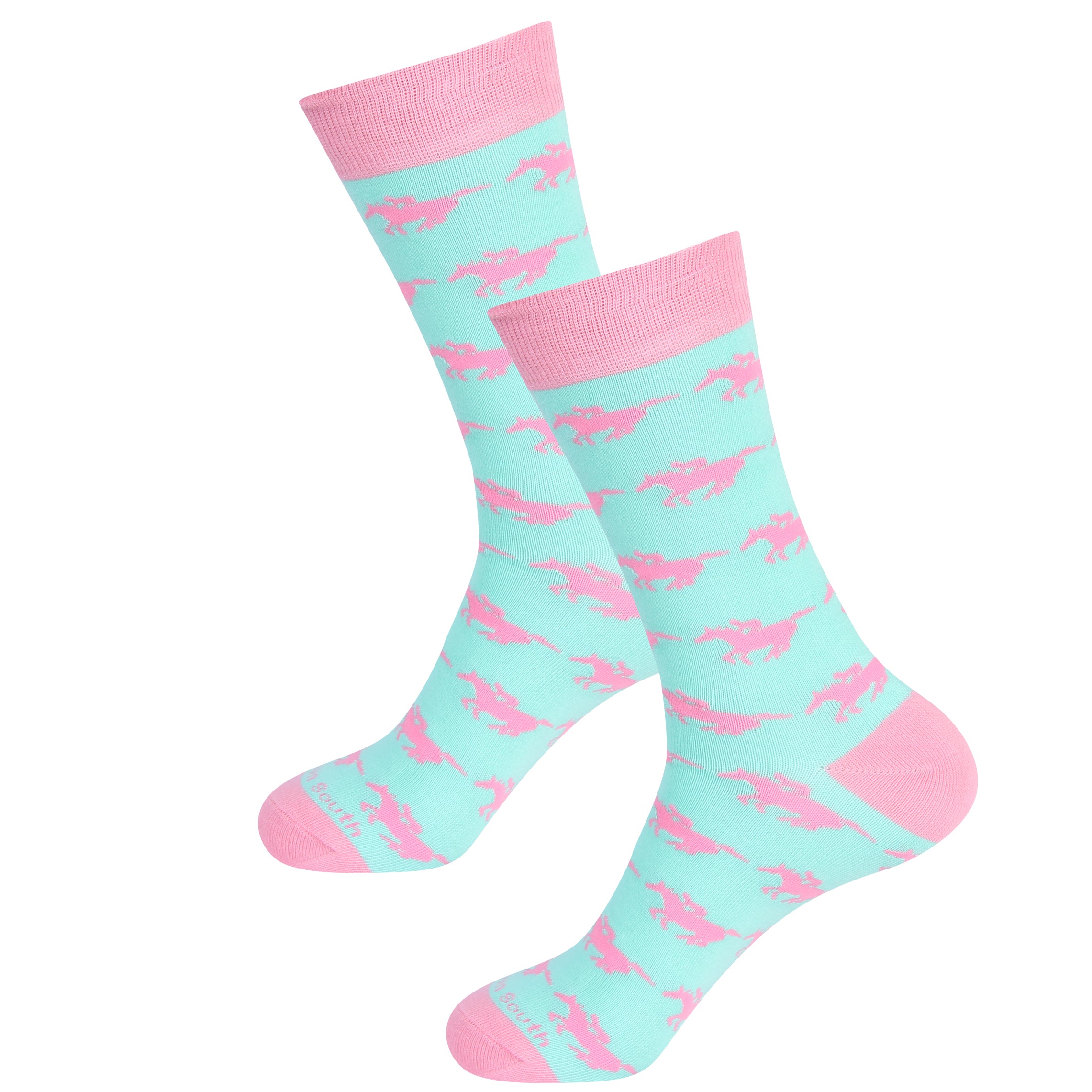 Mint/Pink Running Horse Socks