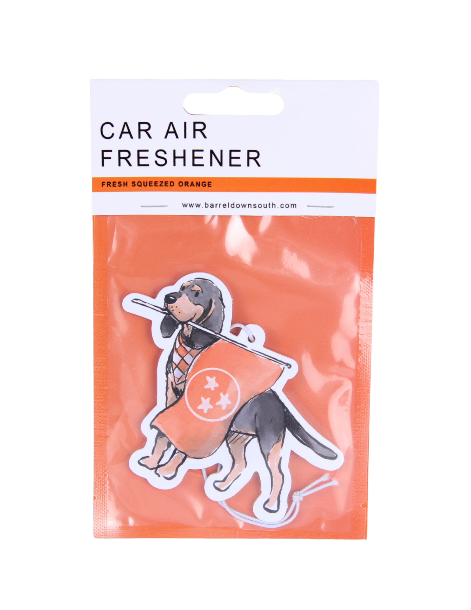Celebrate your love for Bluetick Coonhounds with this vibrant orange tristar flag air freshener. It adds a fun splash of color while keeping your car or room smelling fresh. Perfect for dog lovers who want to show off some personality with a playful twist!