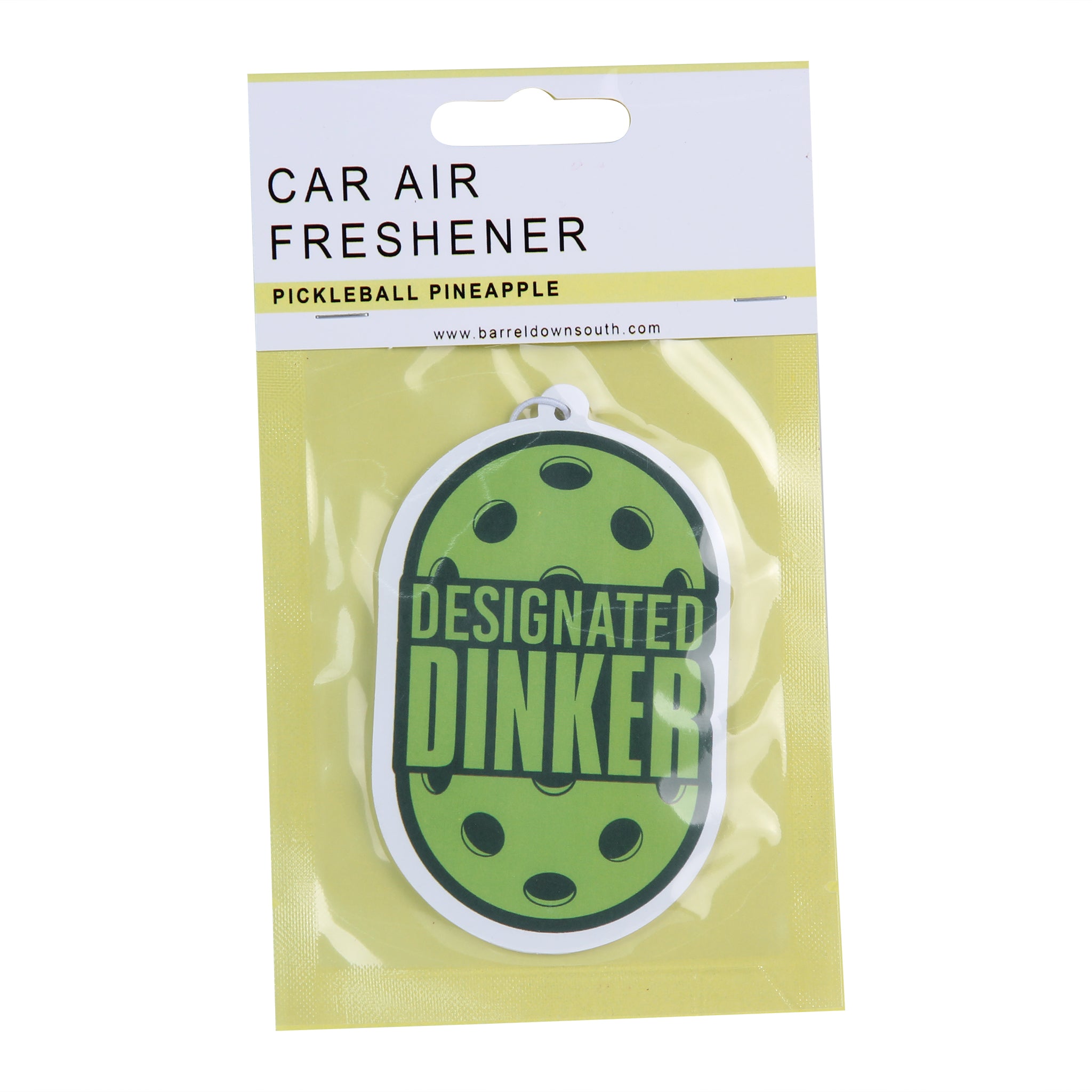 Keep your car smelling fresh with a playful twist! This Designated Dinker Air Freshener features a fun illustration of a pickleball and the cheeky phrase "Designated Dinker". Ideal for pickleball lovers who want to show their passion on the road, this lightweight freshener brings court-side humor to your daily commute. A great gift for the pickleball player in your life!
