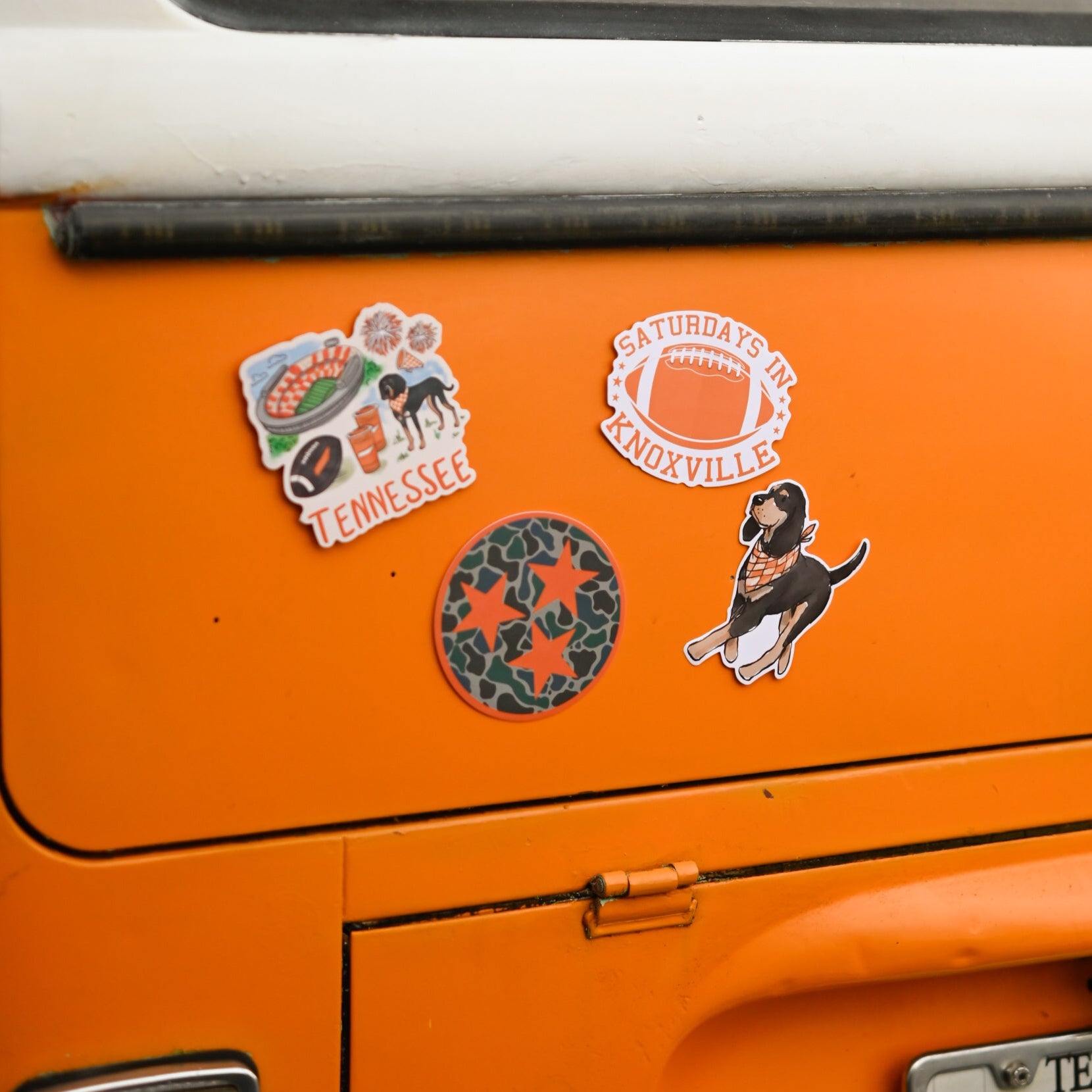 Show your weekend spirit with this playful Saturdays in Knoxville Sticker featuring a vibrant orange football. Perfect for fans who love game day vibes, it adds a touch of fun to your gear, laptops, or water bottles while celebrating those unforgettable Saturdays in Knoxville.