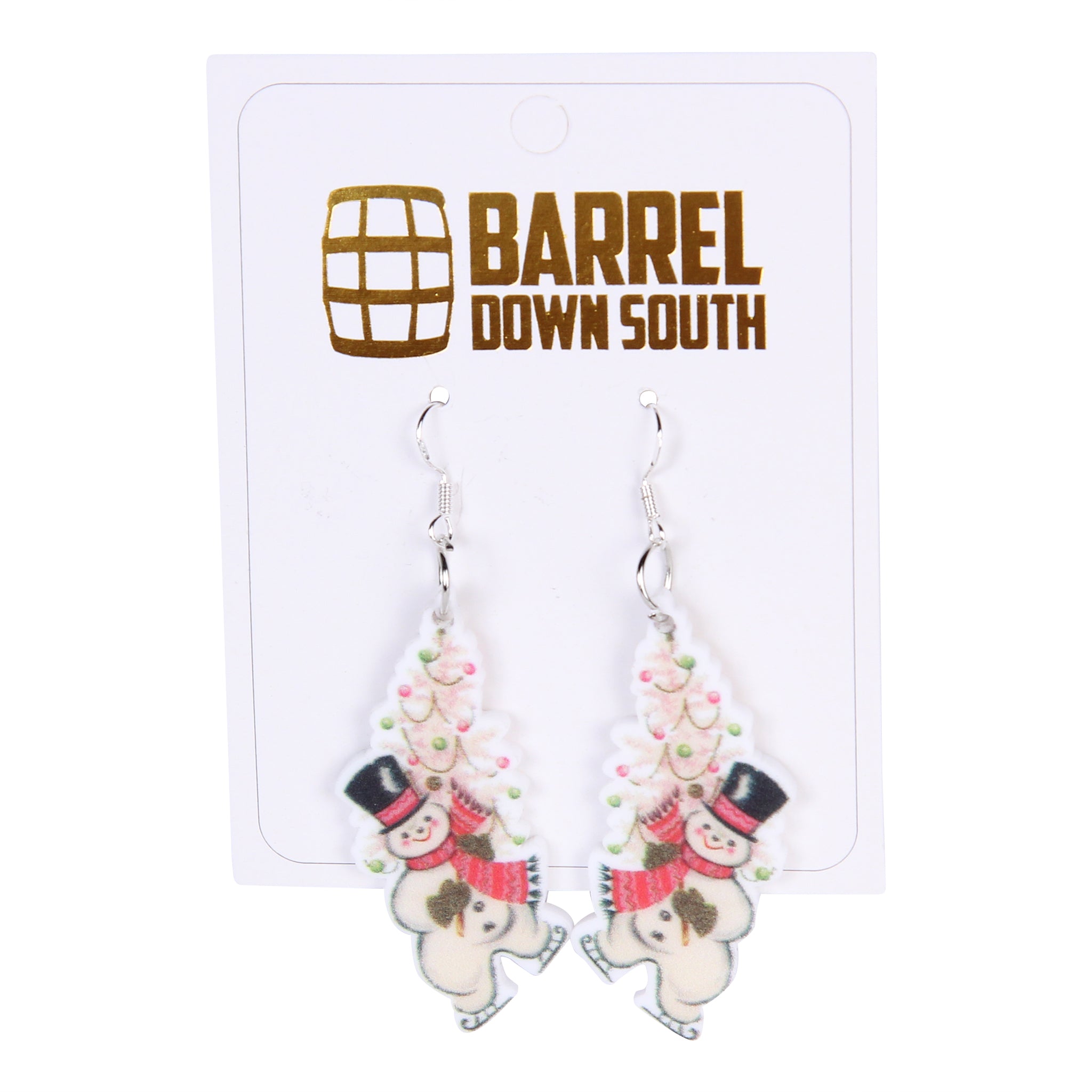Snowman Dancing at Christmas Tree Acrylic Earrings