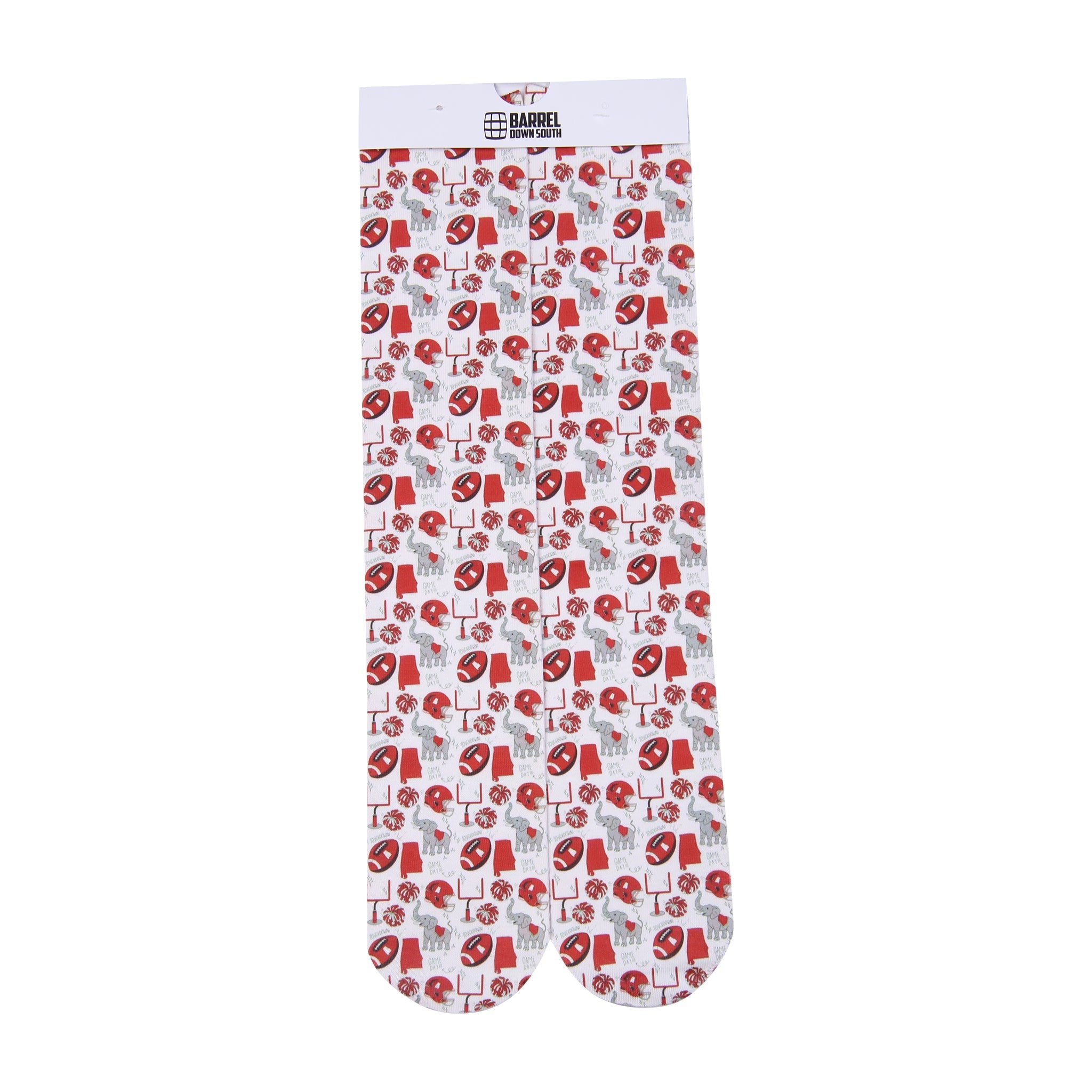 Step into comfort and style with these Alabama Icons Pattern Printed Socks. Featuring iconic Alabama-themed designs, they add a unique touch to your everyday look while keeping your feet cozy. Perfect for fans wanting to showcase their pride with every step, these socks combine durability and eye-catching patterns for all-day wear. Elevate your sock game and celebrate Alabama wherever you go.