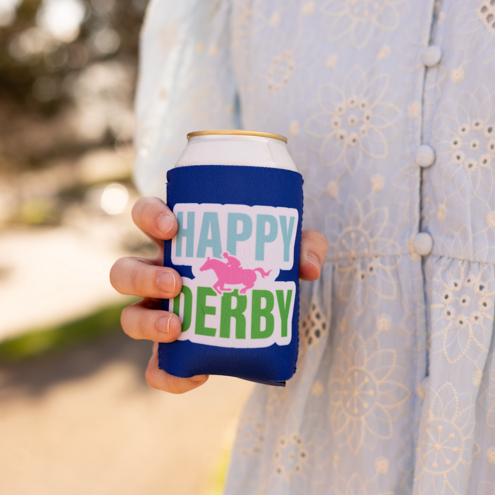 Keep your drinks ice-cold while celebrating the thrill of the race with this charming Happy Derby Can Cooler. Featuring a striking pink racing horse silhouette and bold "Happy Derby" lettering, it's the perfect accessory for game day, tailgates, or any spirited gathering. Durable neoprene construction keeps beverages chilled while the eye-catching design adds a touch of Southern flair to your cooler collection.