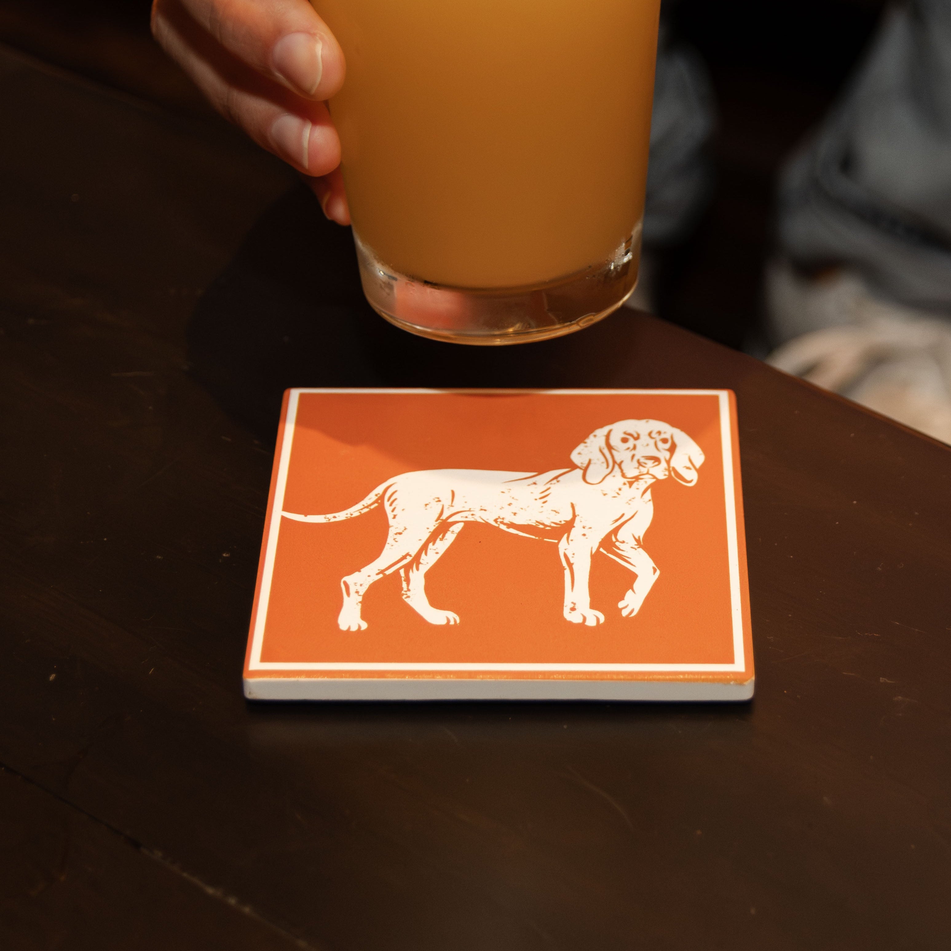 Orange/White Bluetick Coonhound Ceramic Coaster
