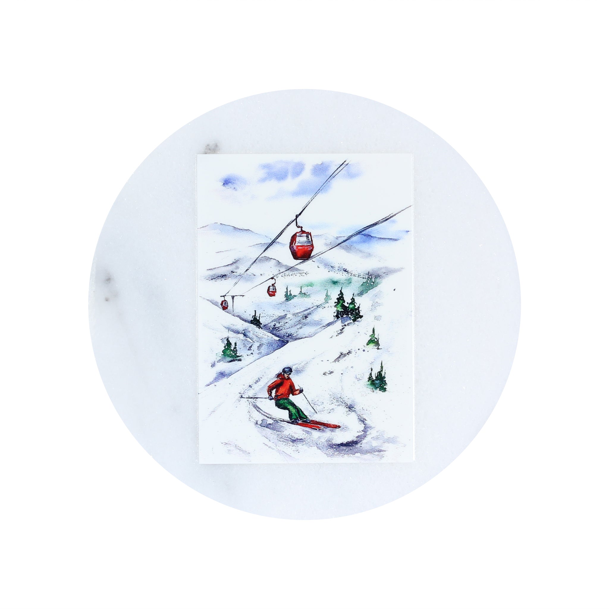 Hit the slopes without leaving your coffee table. This Ski Marble Coaster transports you to snowy peaks with its scenic illustration of ski lifts, majestic mountains, and frosted trees. Perfect for après-ski cocktails or warming up with hot cocoa, it brings mountain lodge vibes to any space. The durable marble construction keeps your drinks safe while the detailed artwork sparks memories of powder days and mountain adventures. A cozy conversation starter for winter enthusiasts and ski lovers everywhere.