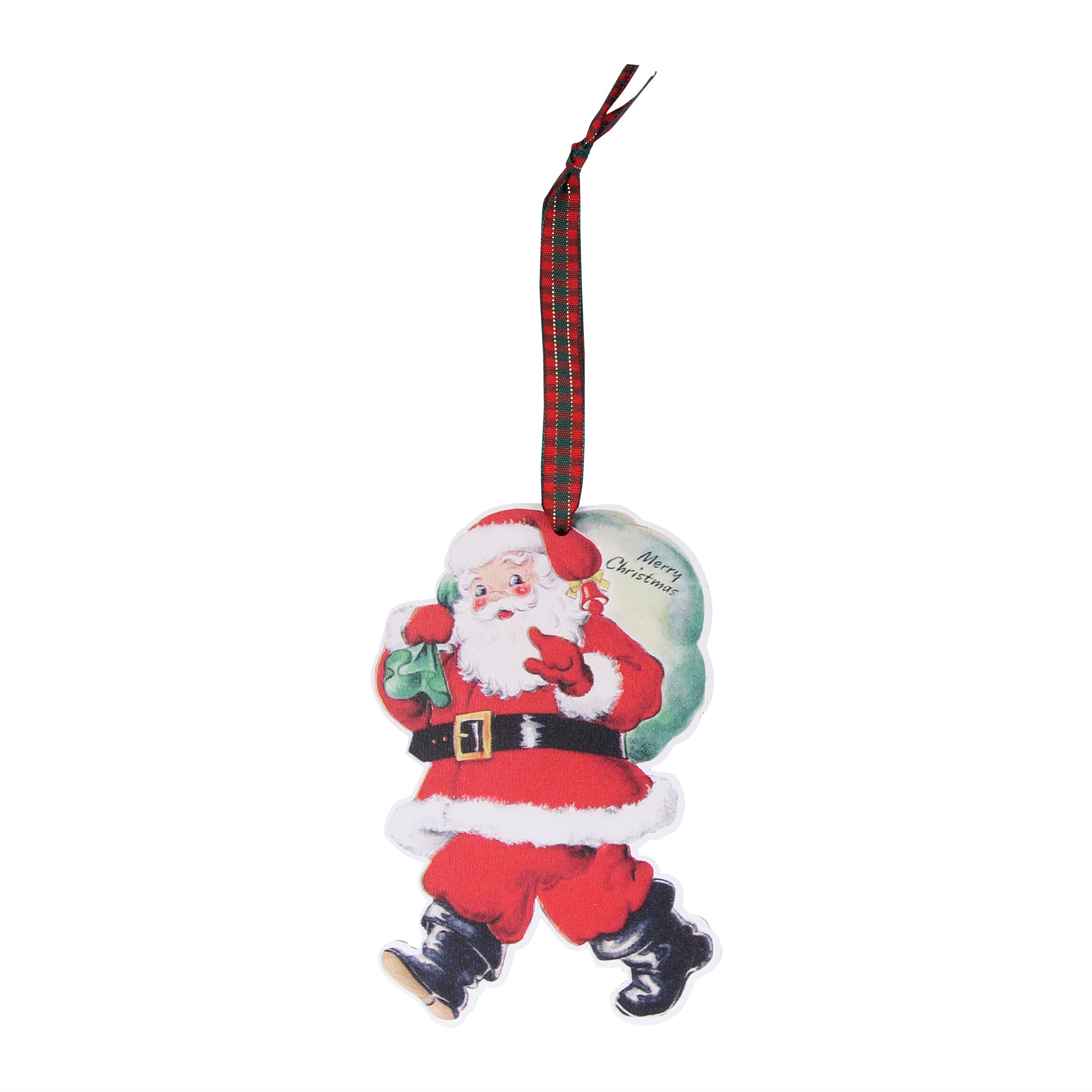 With vibrant, detailed artwork, this ornament combines rustic charm with a heartfelt message. Santa’s cheerful stride and the festive lettering make it an ideal decoration for fans of traditional Christmas décor, Santa ornaments, and timeless holiday symbols.