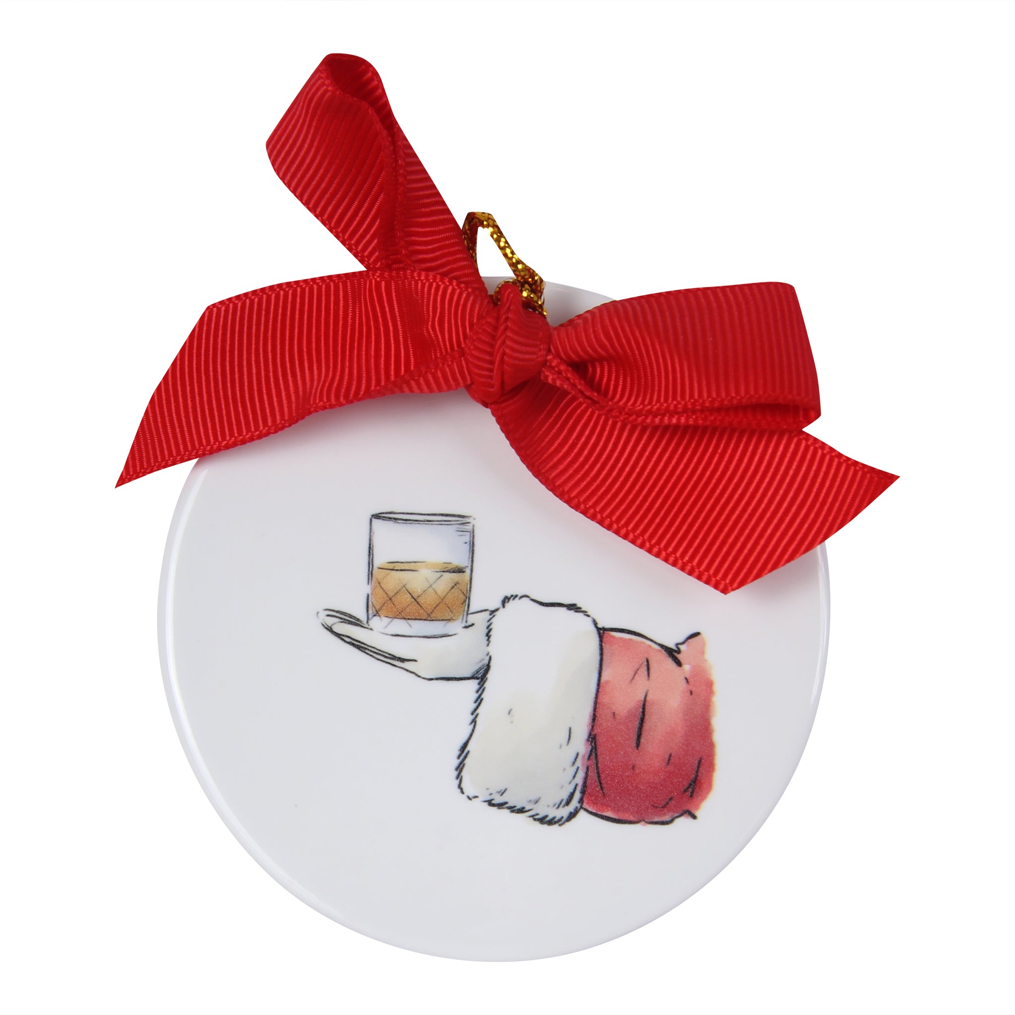 Bring a spirited touch to your holiday tree with this Santa Hand Holding Bourbon Ceramic Ornament featuring Santa's jolly hand clutching a glass of bourbon. Perfect for the whiskey-loving collector or anyone who appreciates a bit of festive humor, this whimsical piece celebrates the finer things in the season. Crafted with attention to detail, it's a conversation starter that adds personality and warmth to your Christmas décor. A delightful gift for bourbon enthusiasts and holiday decorators alike.