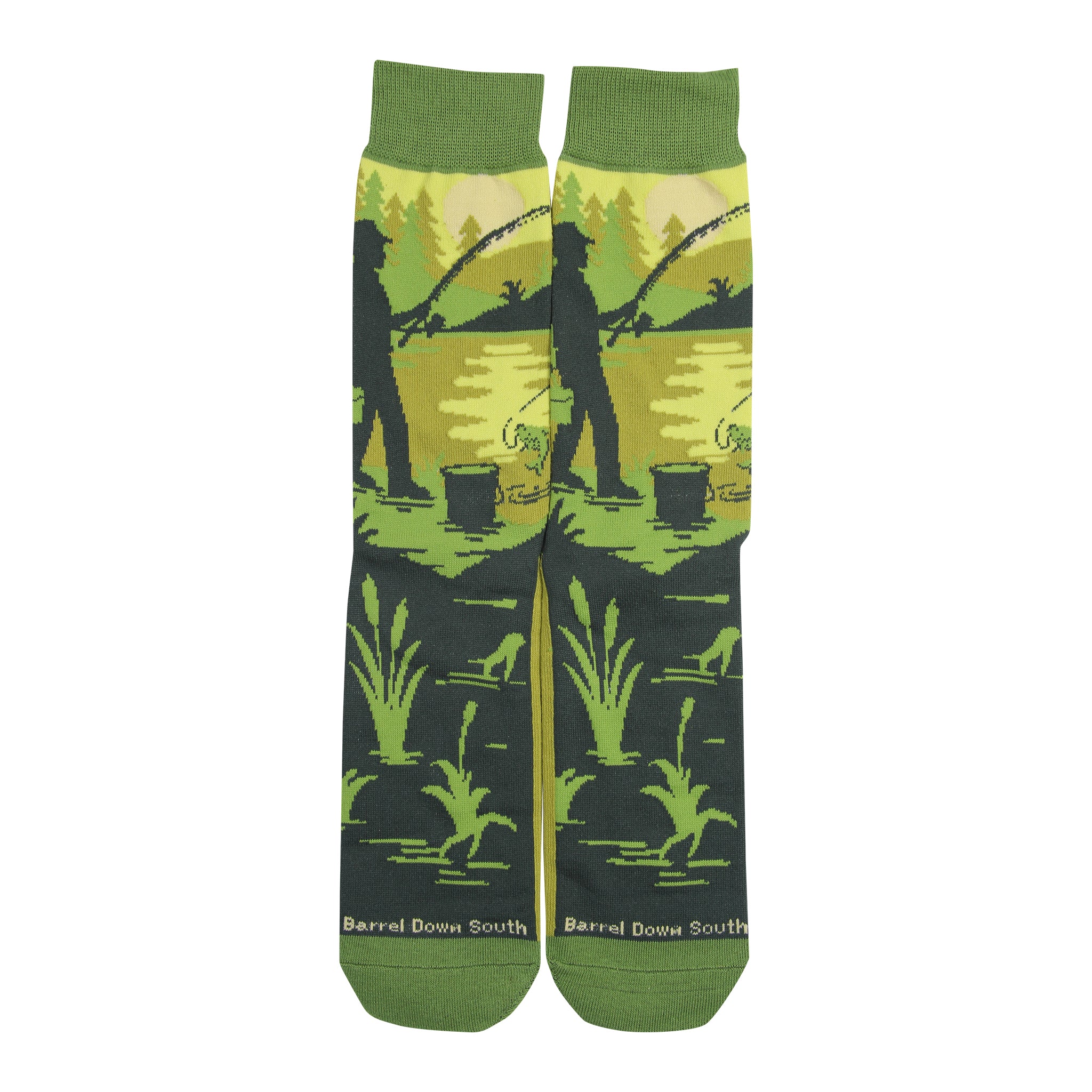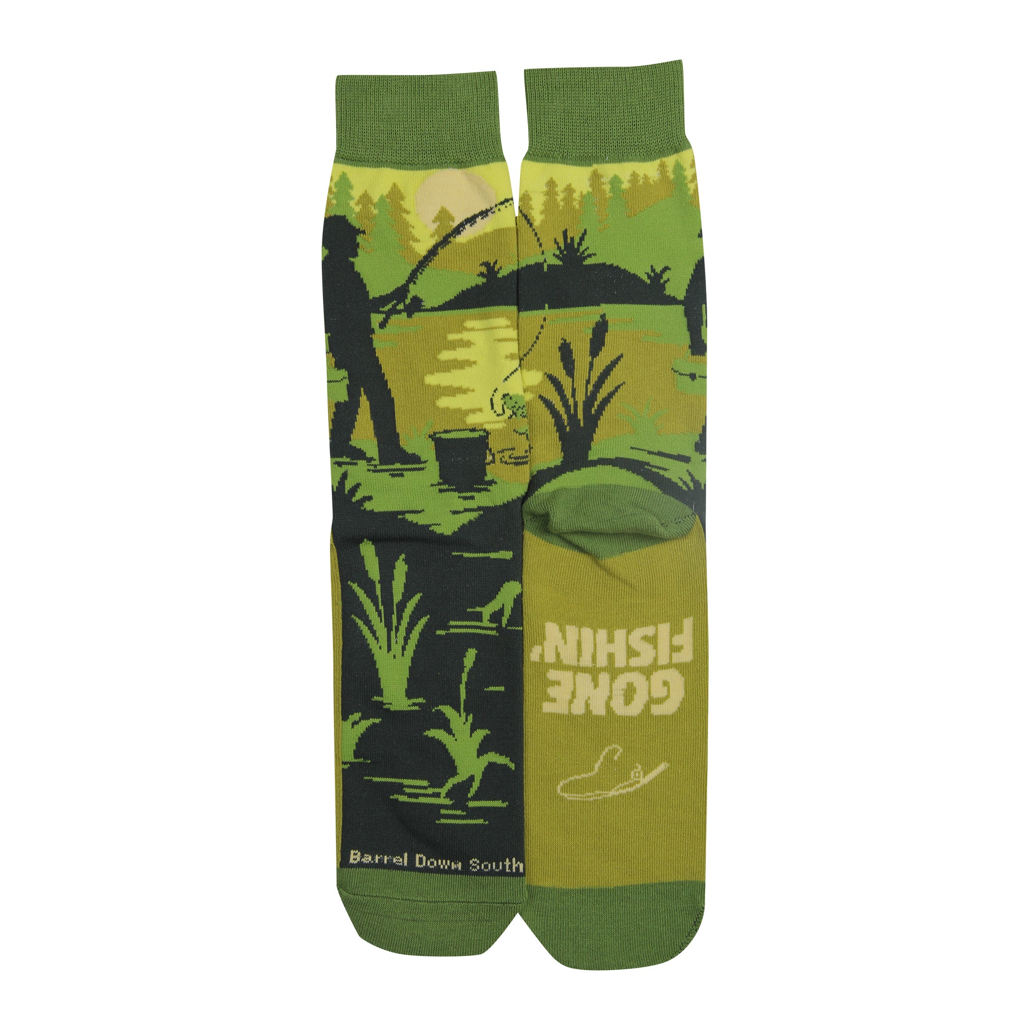 Step into comfort with these playful Gone Fishin' Socks, perfect for anyone who'd rather be casting a line than stuck at a desk. Featuring a charming illustrated lake scene and bold "Gone Fishin'" text, these socks bring a touch of outdoor humor to your everyday wardrobe. Whether you're a seasoned angler or just dreaming of your next fishing adventure, these cozy socks let you wear your passion on your feet. A fun gift for fishing enthusiasts and a lighthearted reminder that the best days are spent by the water.