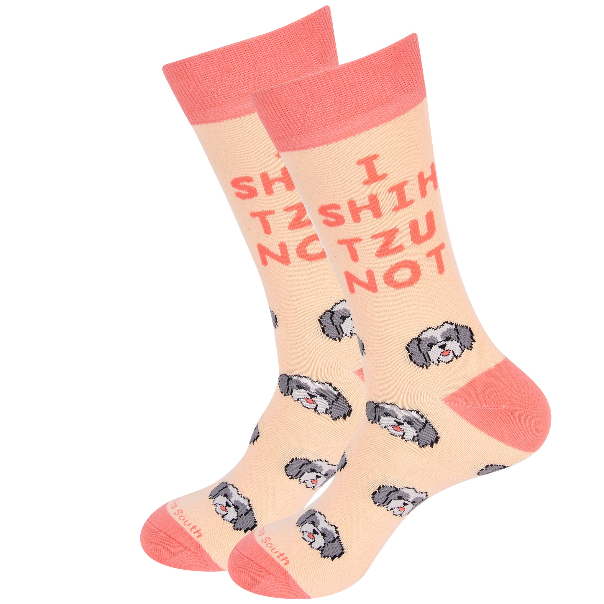 Show off your love for one of the most lovable dog breeds with our charming I Shih Tzu Not Socks, featuring a cute repeating pattern of Shih Tzu heads beneath a clever and playful pun. These socks are a perfect blend of humor and canine cuteness, designed for Shih Tzu owners, dog lovers, and anyone who appreciates witty, pun-inspired fashion.