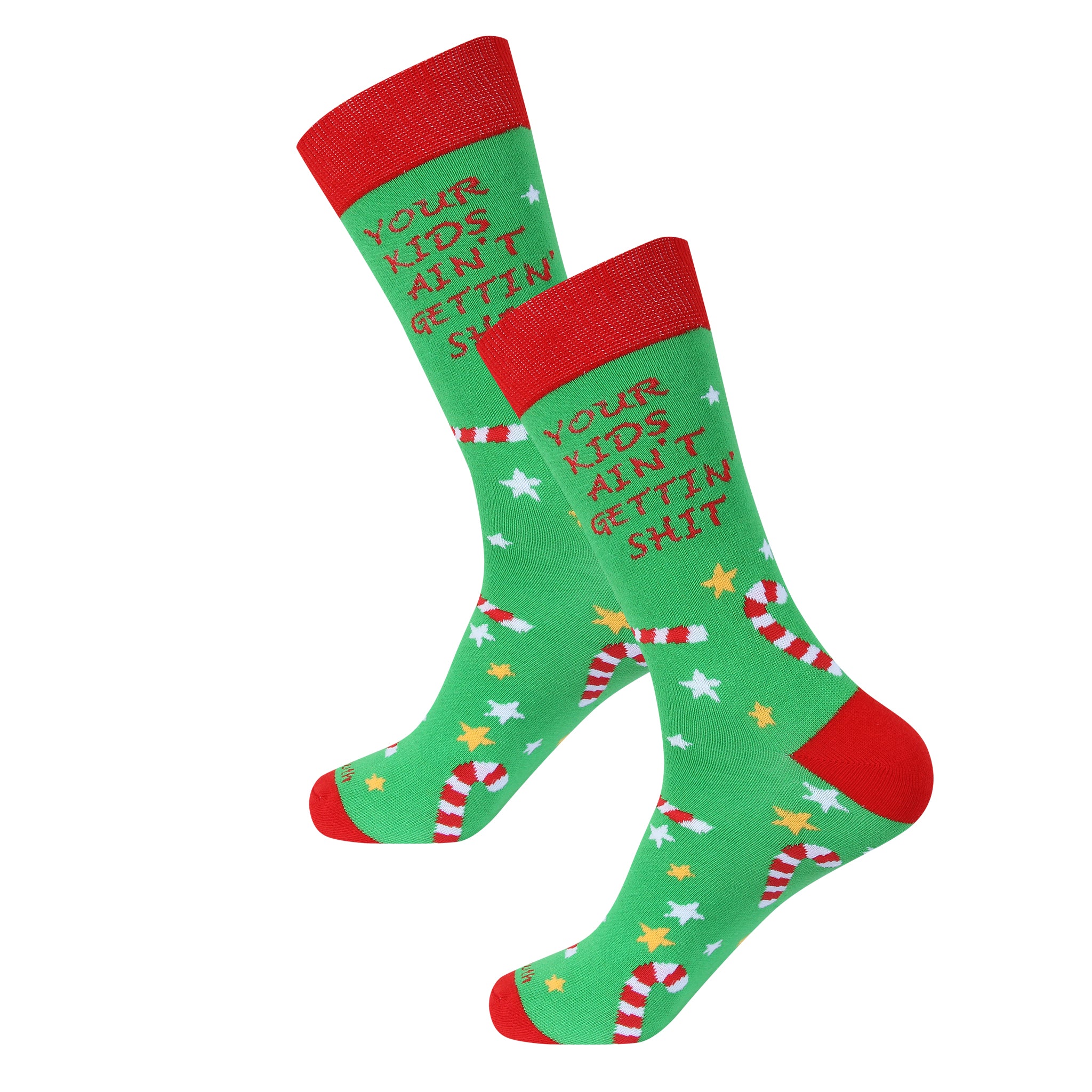 Step up your holiday humor with these Your Kids Ain't Getting Shit Double sided Christmas Socks. Perfect for keeping your feet cozy while delivering a cheeky message, these socks add a playful twist to your festive outfit. Whether gifting or wearing yourself, they're sure to spark laughs and spread seasonal sass.