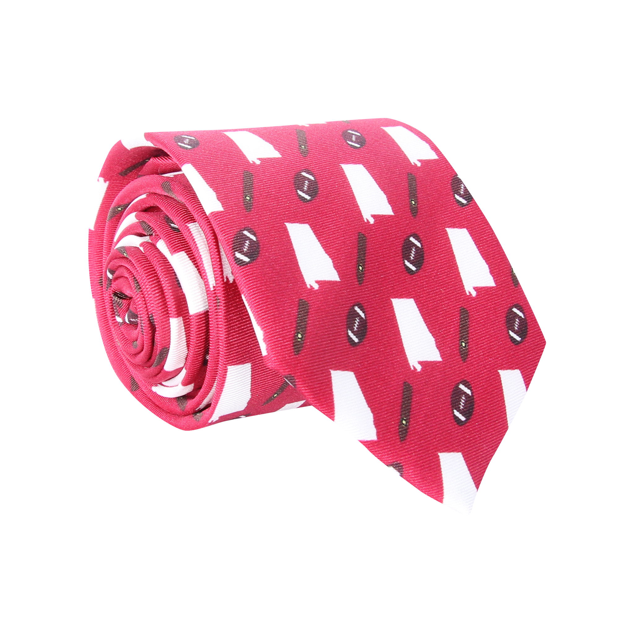 Show your Southern pride with this bold crimson necktie featuring a repeating pattern of Alabama state silhouettes, footballs, and goalposts. Perfect for game day, tailgates, or adding a spirited touch to your wardrobe, this design celebrates the heart of football country with style. Made from premium woven fabric, it offers a smooth finish and lasting durability, making it a winning choice for both fans and fashion-forward dressers alike.
