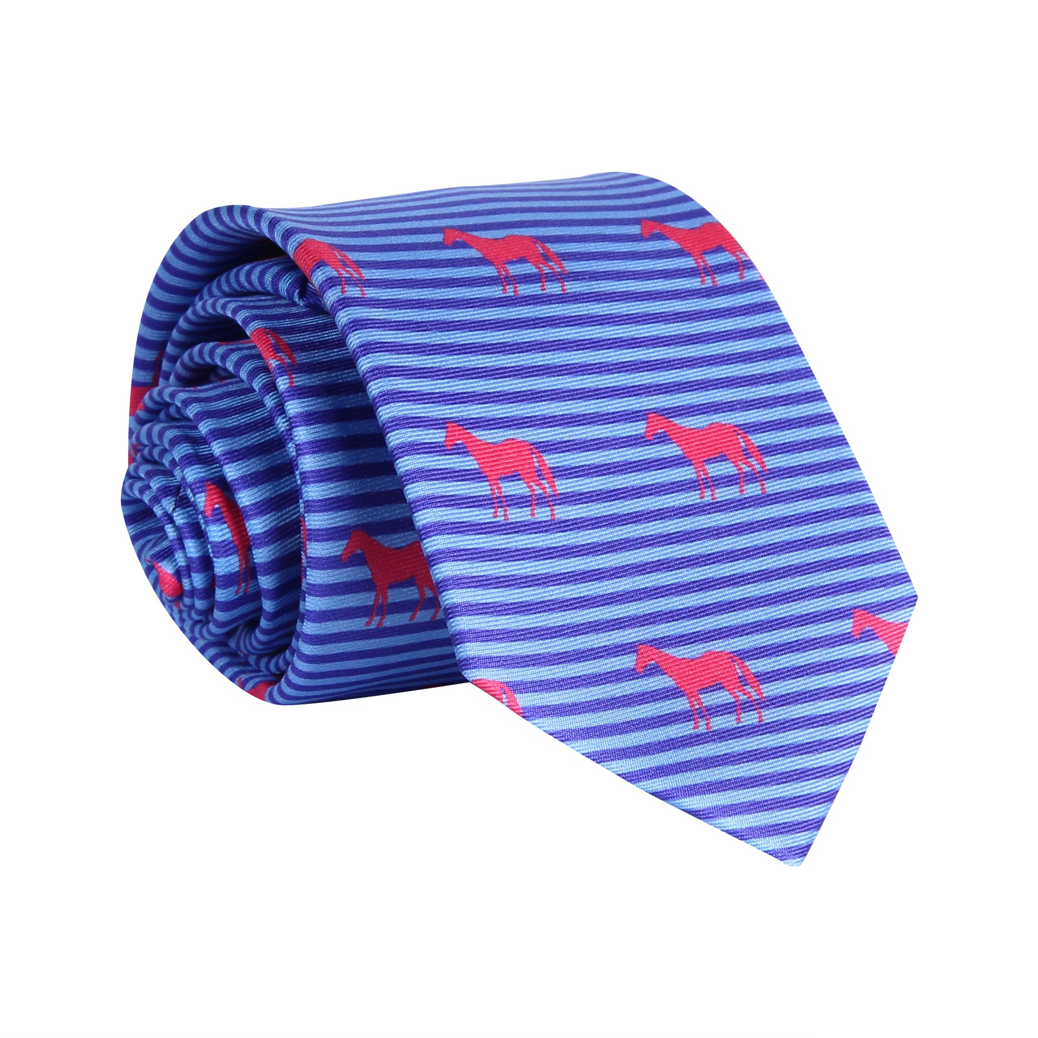 Blue Stripes and Pink Horses Horse Racing Necktie