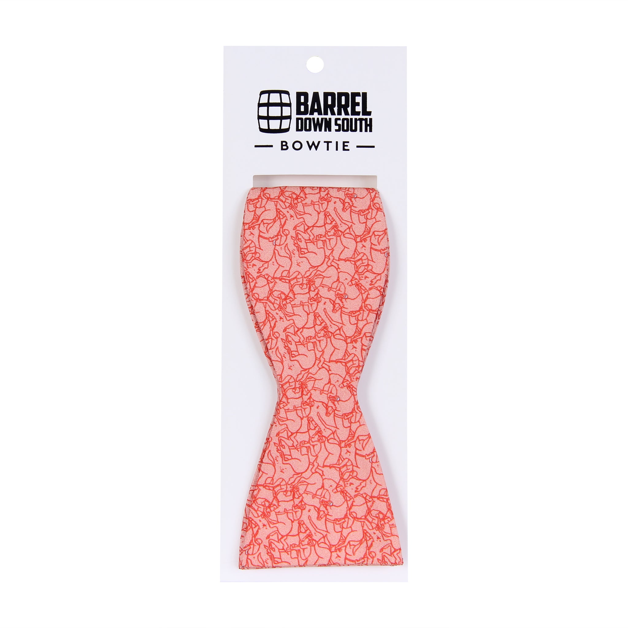 Make a statement with this spirited Red Overlapping Horses Bowtie that celebrates the wild side of Southern style. Featuring a dynamic pattern of overlapping running horses, it's perfect for adding personality to any outfit—whether you're heading to a formal event or just want to stand out from the crowd. This playful accessory brings movement and charm to your look, ideal for horse lovers and anyone who appreciates bold, distinctive fashion.
