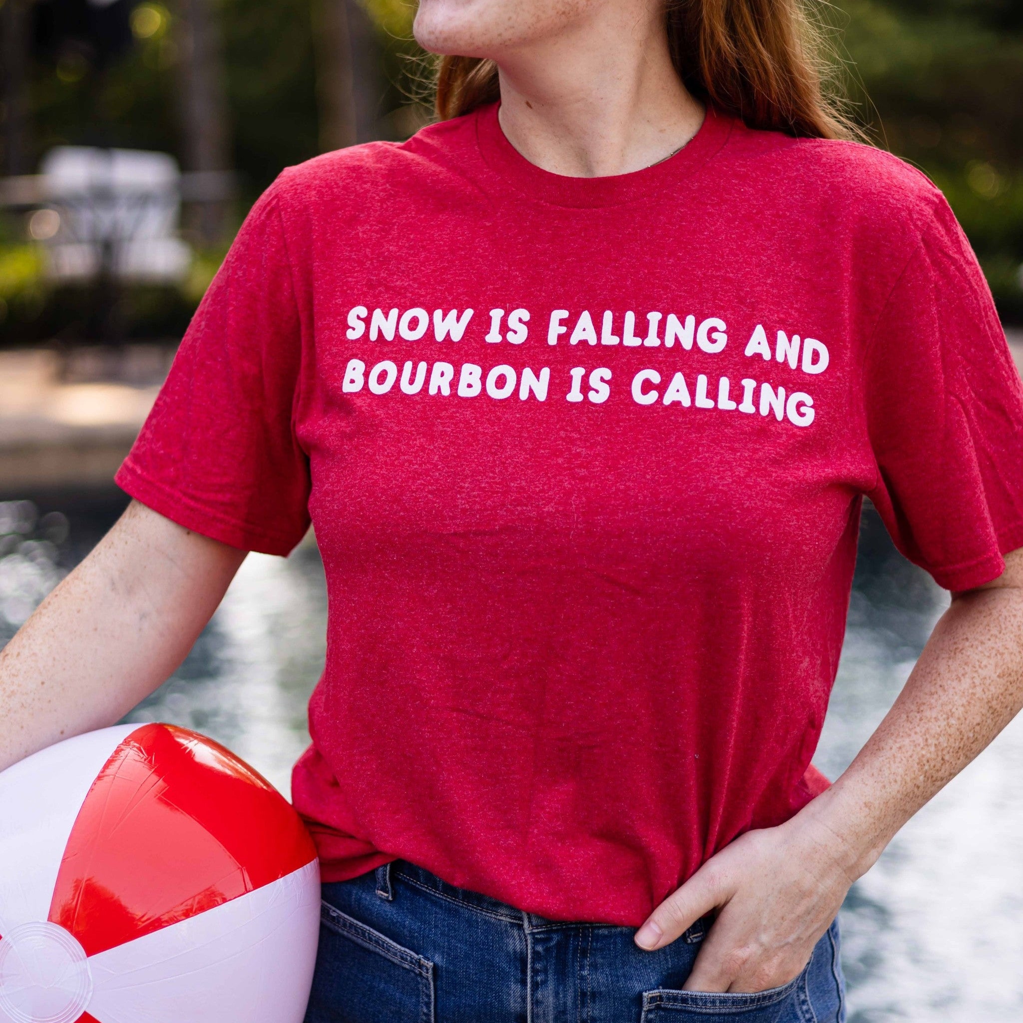 Embrace the season with a dash of Southern charm in this festive Snow Is Falling and Bourbon is Calling Shirt. Featuring bold white lettering that declares "Snow Is Falling and Bourbon Is Calling," it's the perfect blend of holiday spirit and good-natured humor. Soft, comfortable, and ideal for casual winter gatherings, this shirt lets your personality shine while keeping you cozy. A must-have for anyone who appreciates a little wit with their warmth.