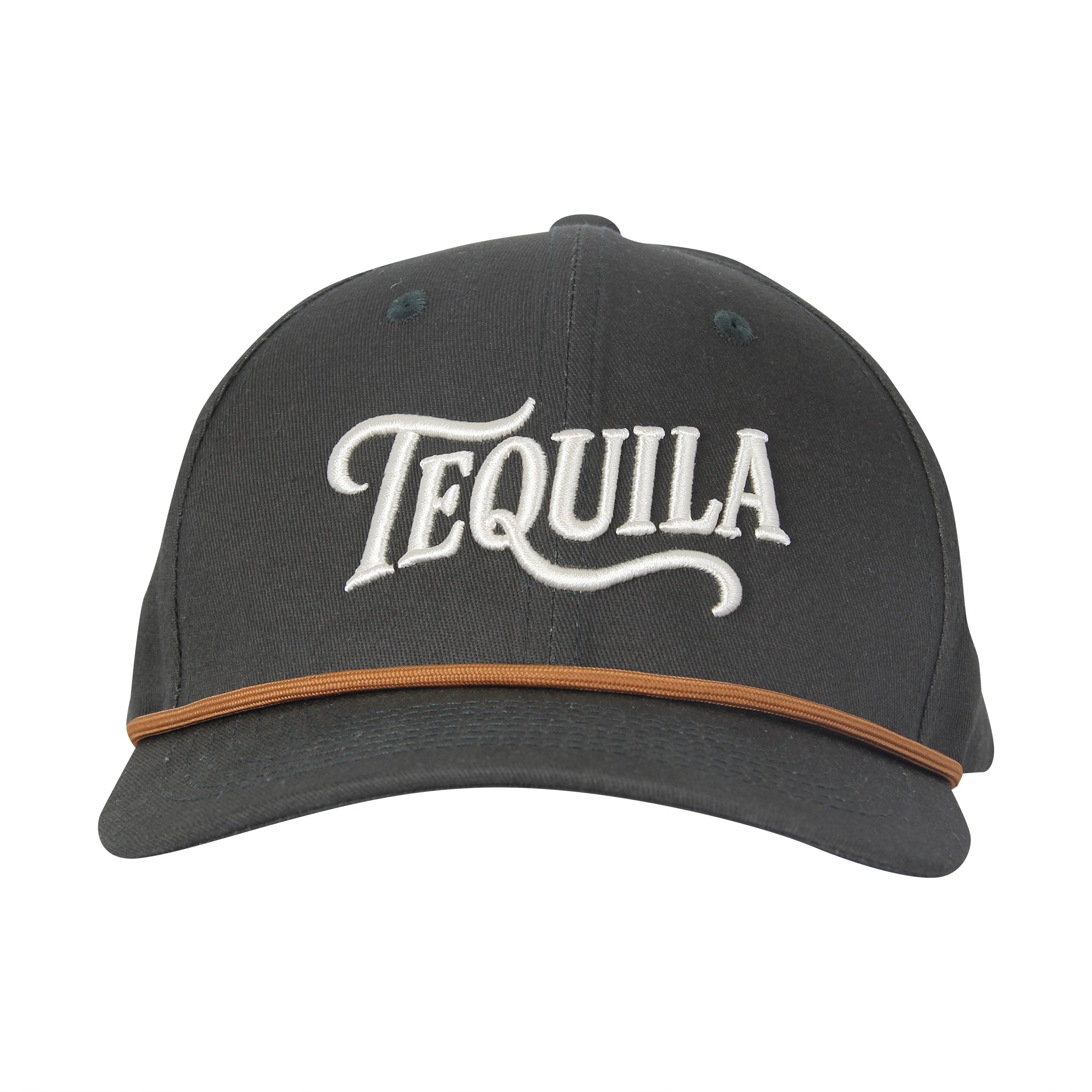 Embroidered “TEQUILA” in bold green thread