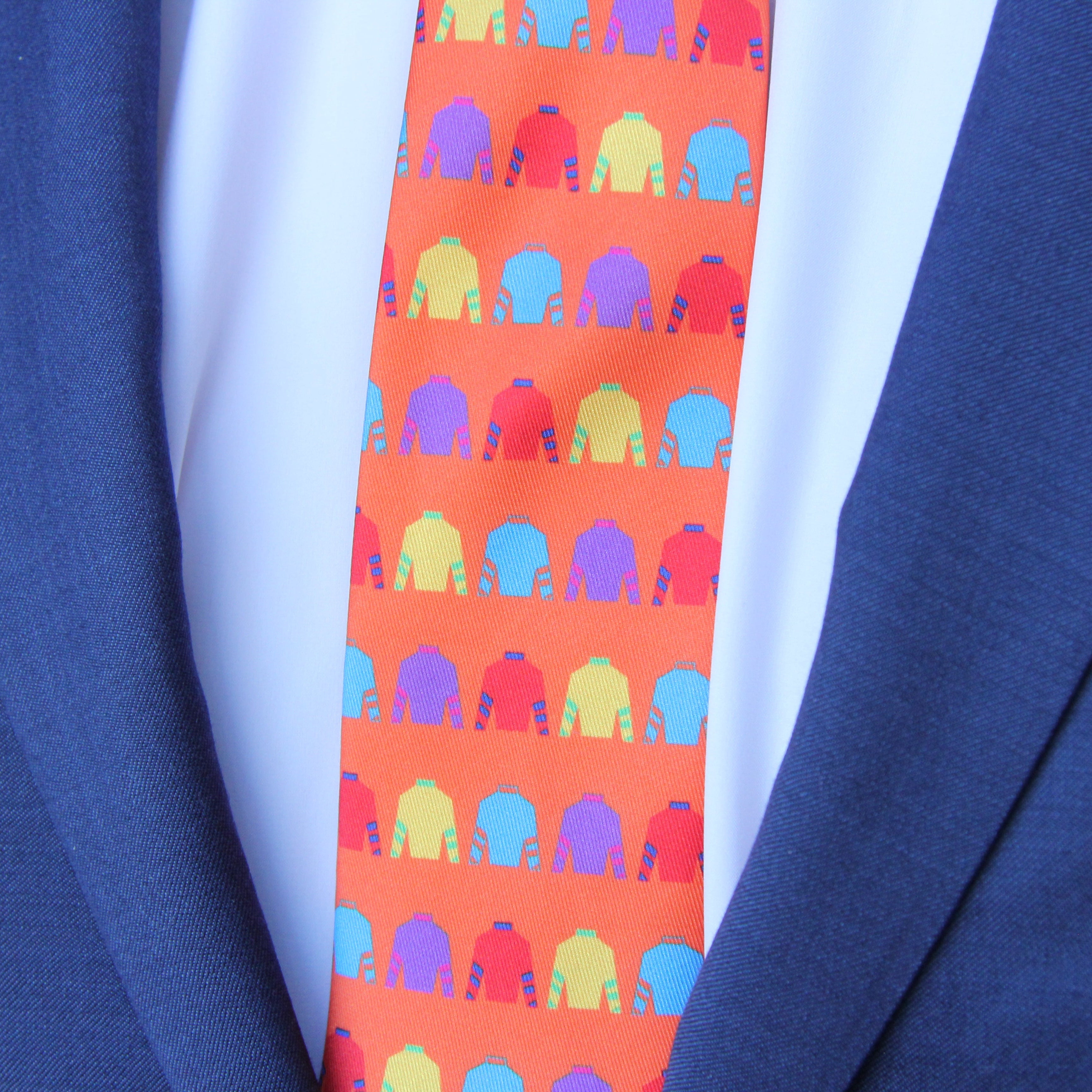 Orange Multi Colored Jockey Silk Necktie