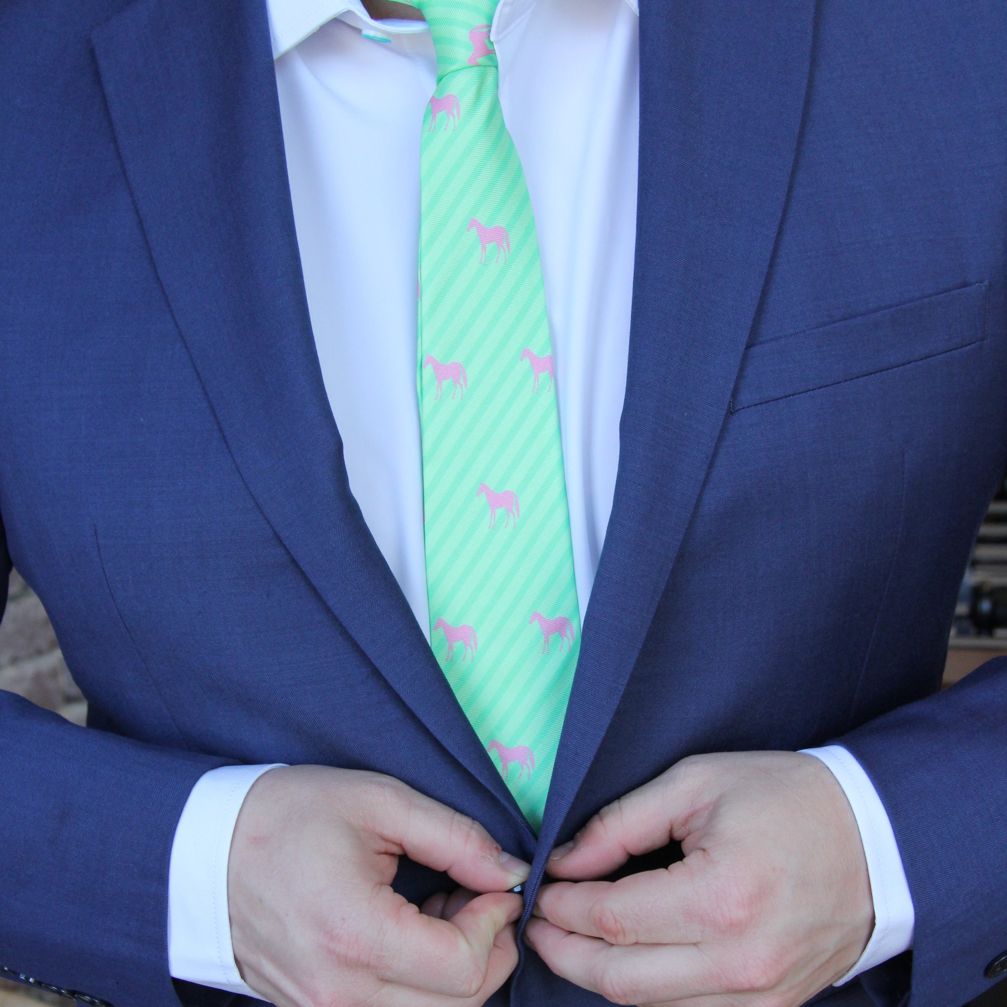 Mint Jockeys and Horseshoes Necktie