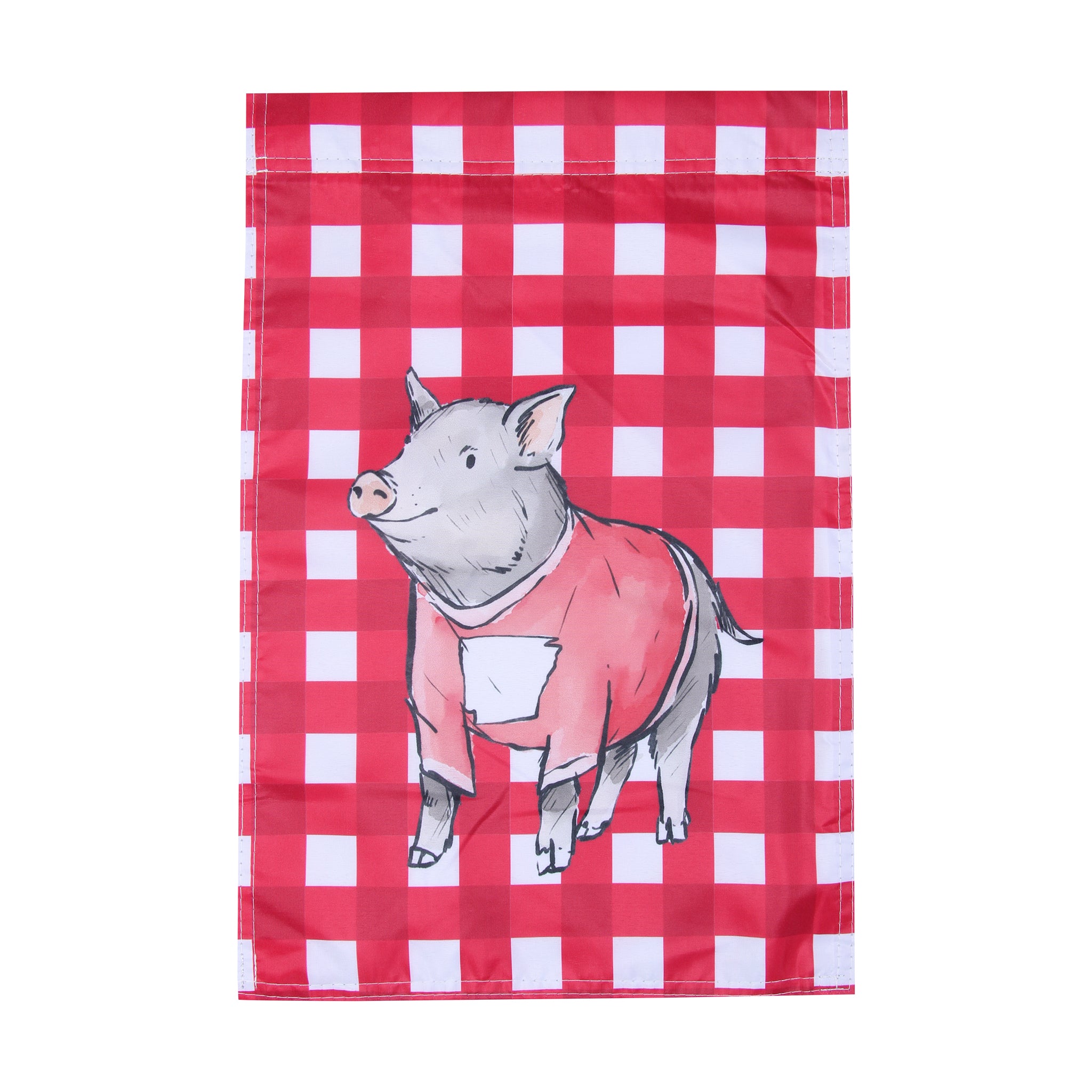 Add a touch of charm and character to your outdoor décor with this playful garden flag. Featuring a hand-drawn pig in a red jersey, set against a bold red-and-white checkered background, this design is perfect for showcasing fun spirit and personality in any yard or porch.