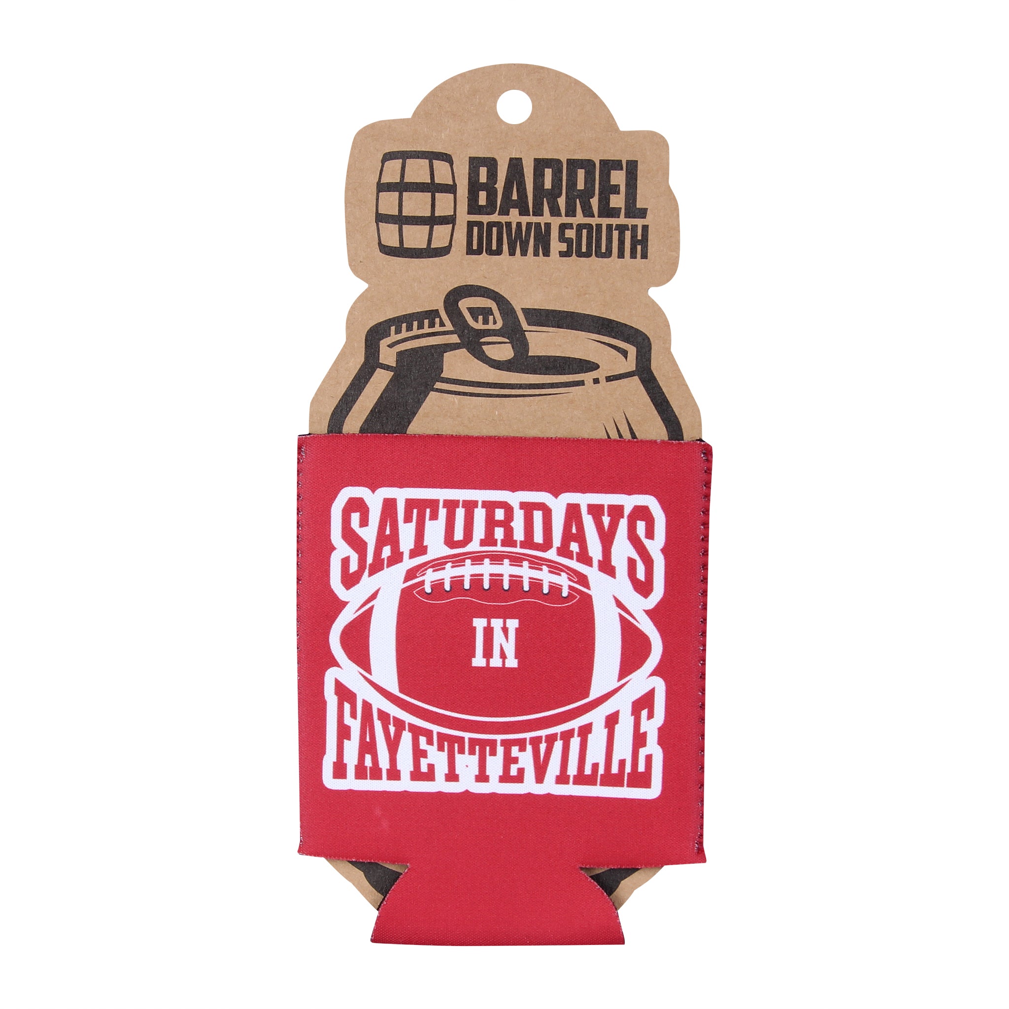 Keep your drinks cool and your vibes even cooler with the Saturdays in Fayetteville Can Cooler. Perfect for weekend adventures or backyard hangouts, this playful can cooler keeps your beverage chilled while adding a splash of fun to your day. Whether you're relaxing or on the move, it’s the perfect companion to keep your drink fresh and your spirits high.