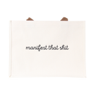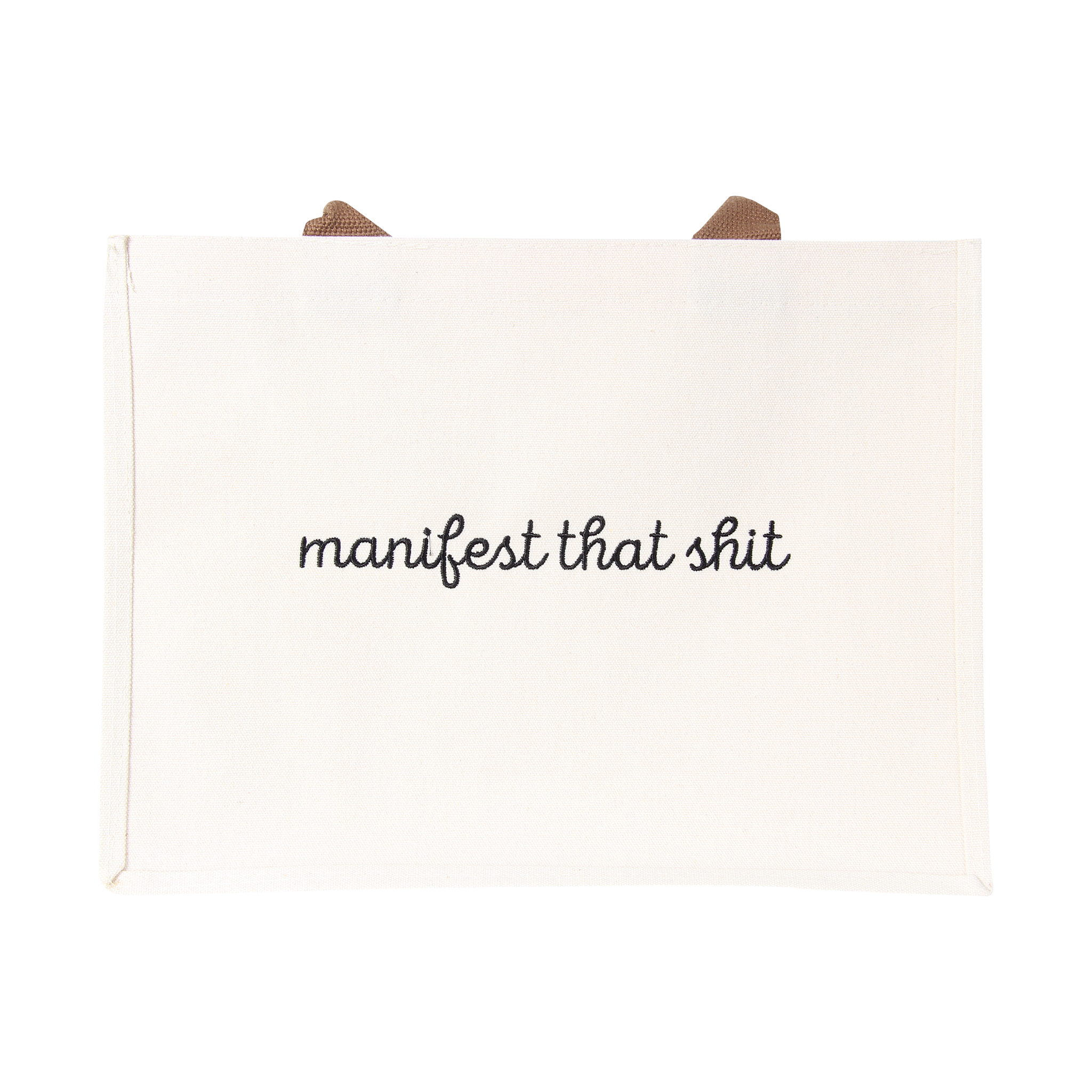 Bold, cheeky, and ready to go wherever you do—this laminated canvas Manifest That Shit Bag carries more than just your daily essentials, it carries attitude. With “manifest that shit” embroidered in sleek script, this bag is both a mantra and a must-have. The laminated finish makes it extra durable and easy to wipe clean, while the sturdy brown handles add comfort and strength. Spacious enough for groceries, books, or weekend essentials, it’s the perfect tote for anyone who believes in making things happen (with style).