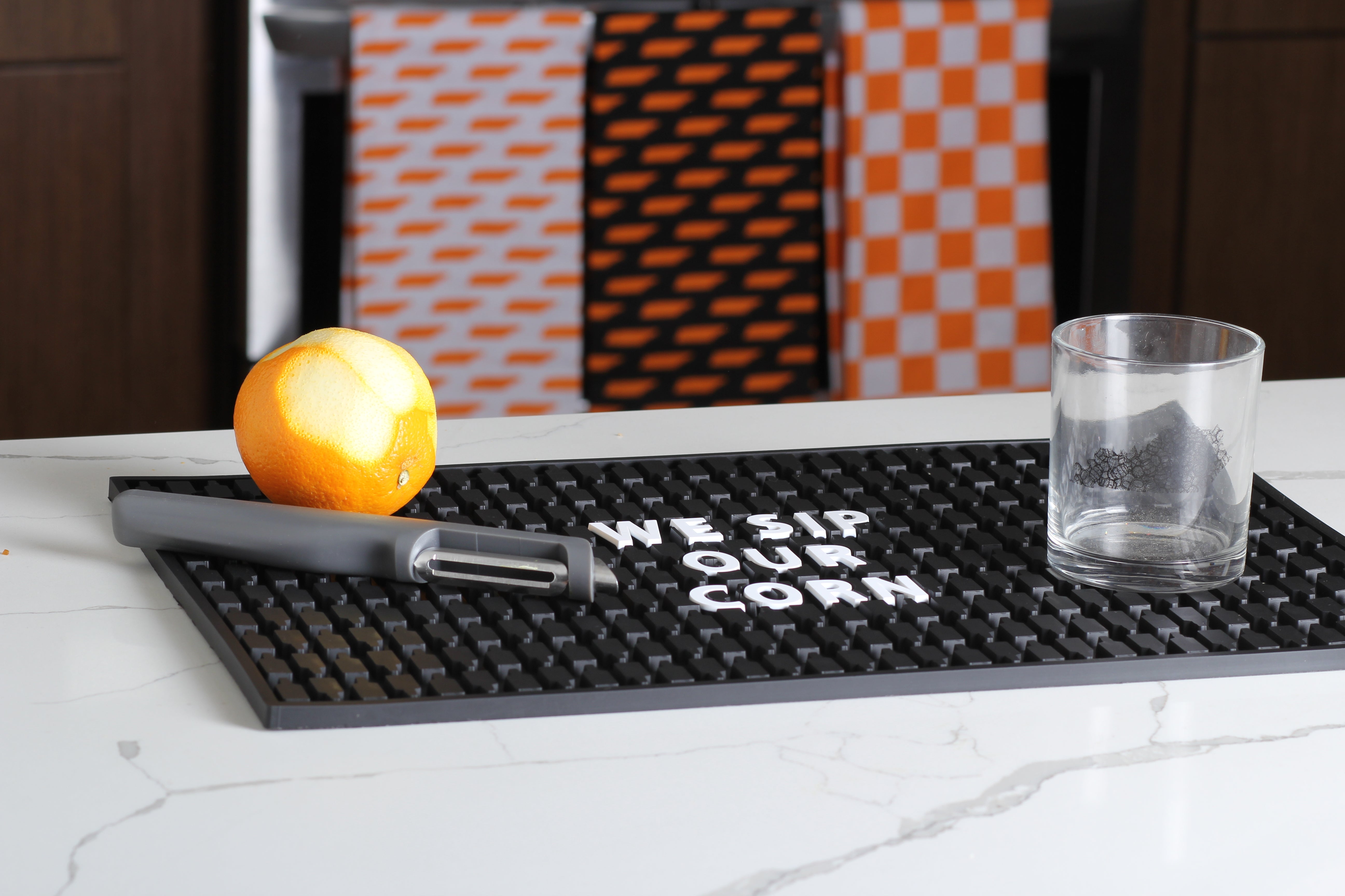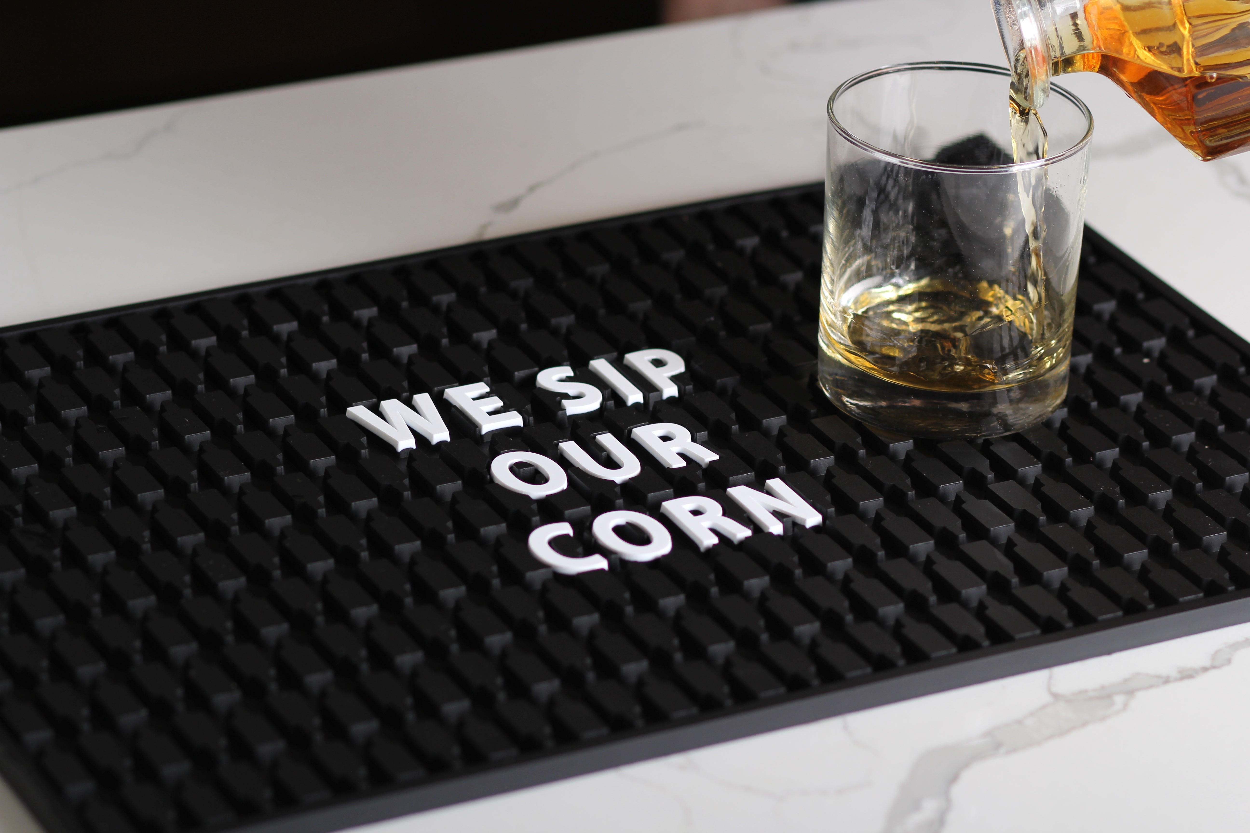 Raise the bar with this witty We Sip Our Corn Bar Mat that brings Southern charm and humor to your home setup. Featuring the cheeky phrase "We Sip Our Corn," it's the perfect conversation starter for whiskey lovers, bourbon enthusiasts, and anyone who appreciates a good laugh. Durable and easy to clean, this mat protects your surfaces while adding personality to your bar, kitchen counter, or man cave. A must-have for folks who don't take themselves too seriously.