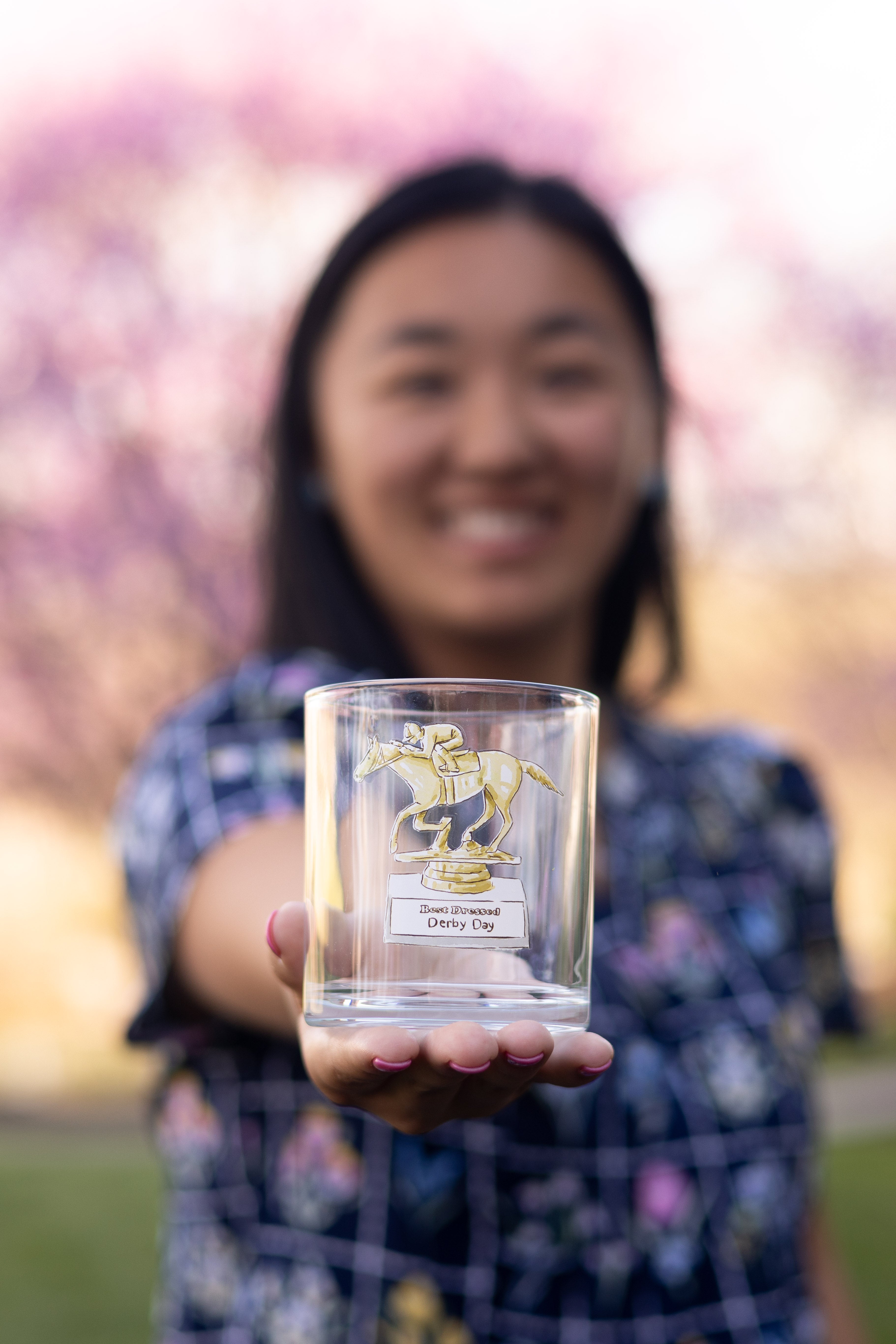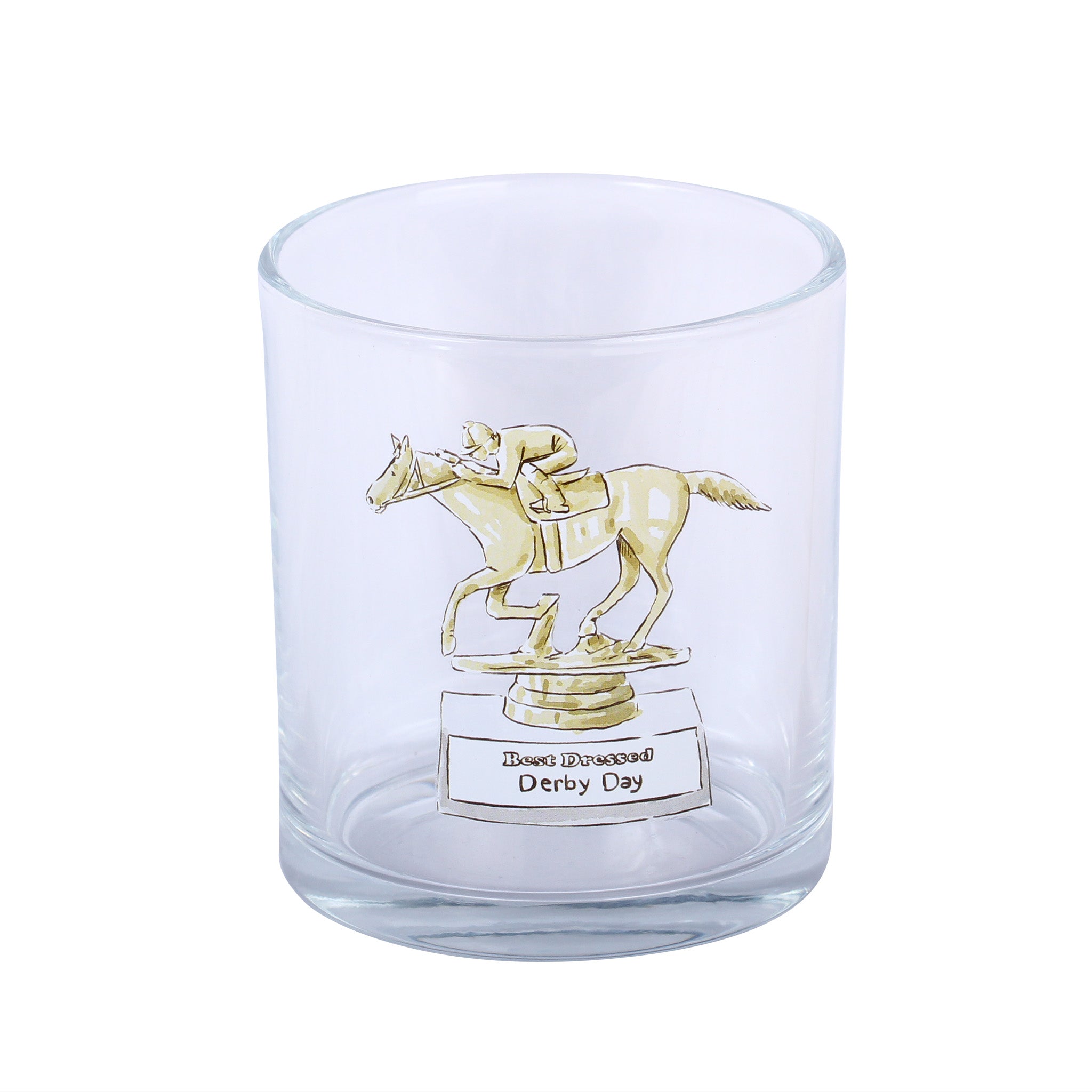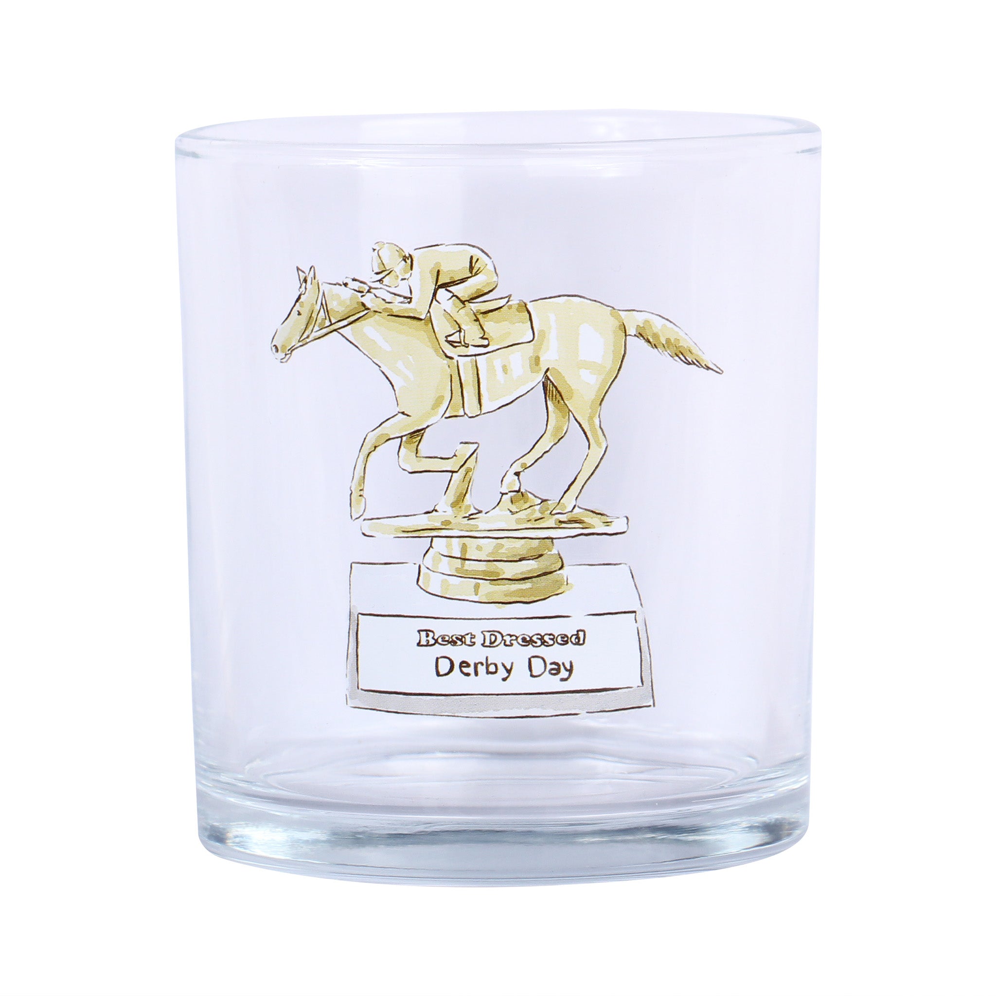 Raise a glass to style and sophistication with this charming Best Dressed Trophy Rocks Glass that celebrates Derby Day fashion in the most fun way possible. Featuring an illustrated trophy plaque emblazoned with "best dressed derby day," it's the perfect vessel for toasting your most fashionable moments—or anyone who knows how to turn heads at the track. Whether you're sipping bourbon neat or mixing up a classic cocktail, this playful piece brings personality to every pour. A must-have for Derby enthusiasts and style-savvy spirits lovers alike.