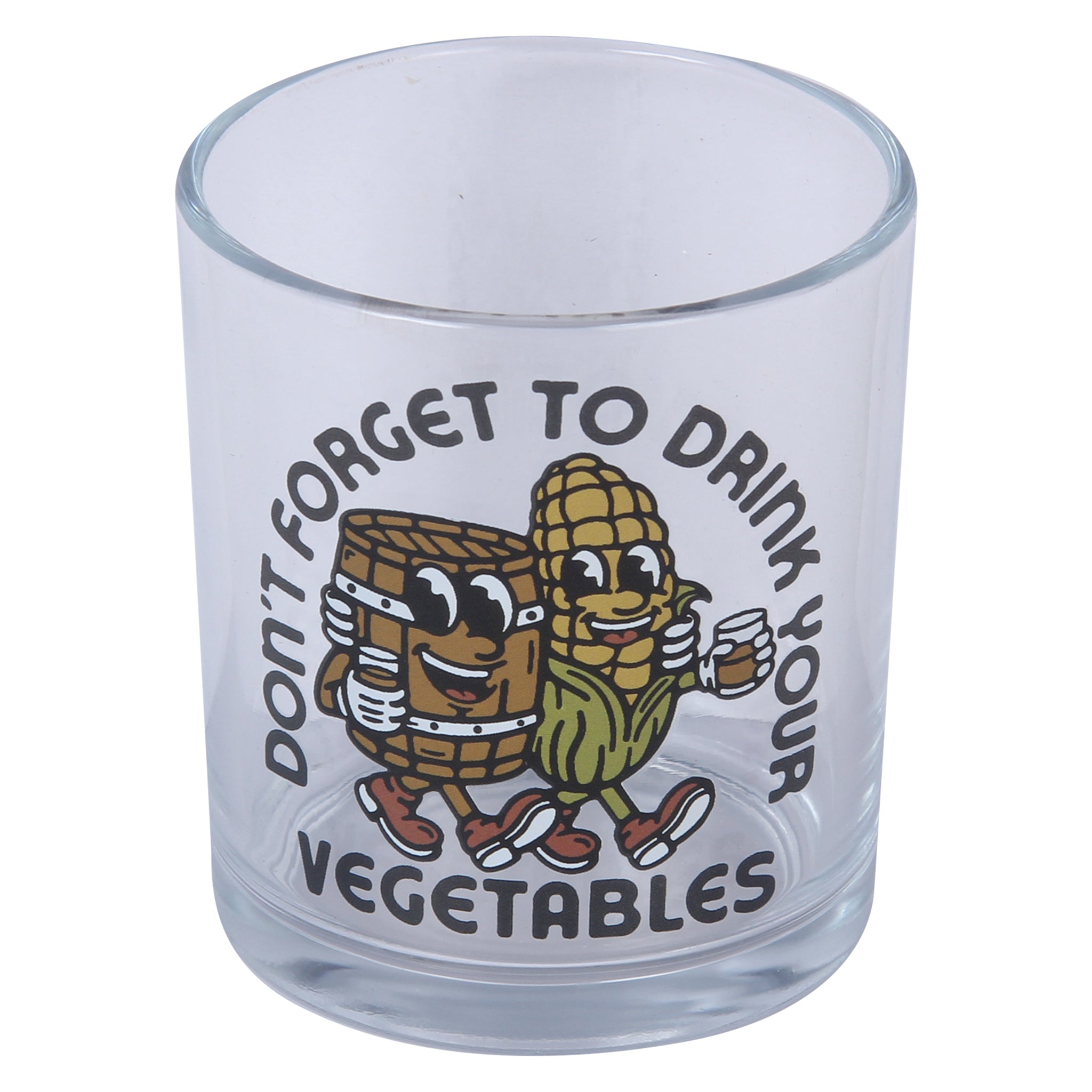 Raise a glass to garden-fresh humor with this charming Don't Forget To Drink Your Vegetables Rocks Glass that reminds you to embrace your vegetables bourbon-style. Featuring a whimsical cartoon bourbon barrel and corn cob strolling together, paired with the cheeky phrase "Don't forget to drink your vegetables," this glass brings a smile to every sip. Perfect for whiskey lovers with a sense of humor, it's an ideal gift for anyone who appreciates clever barware and Southern charm.