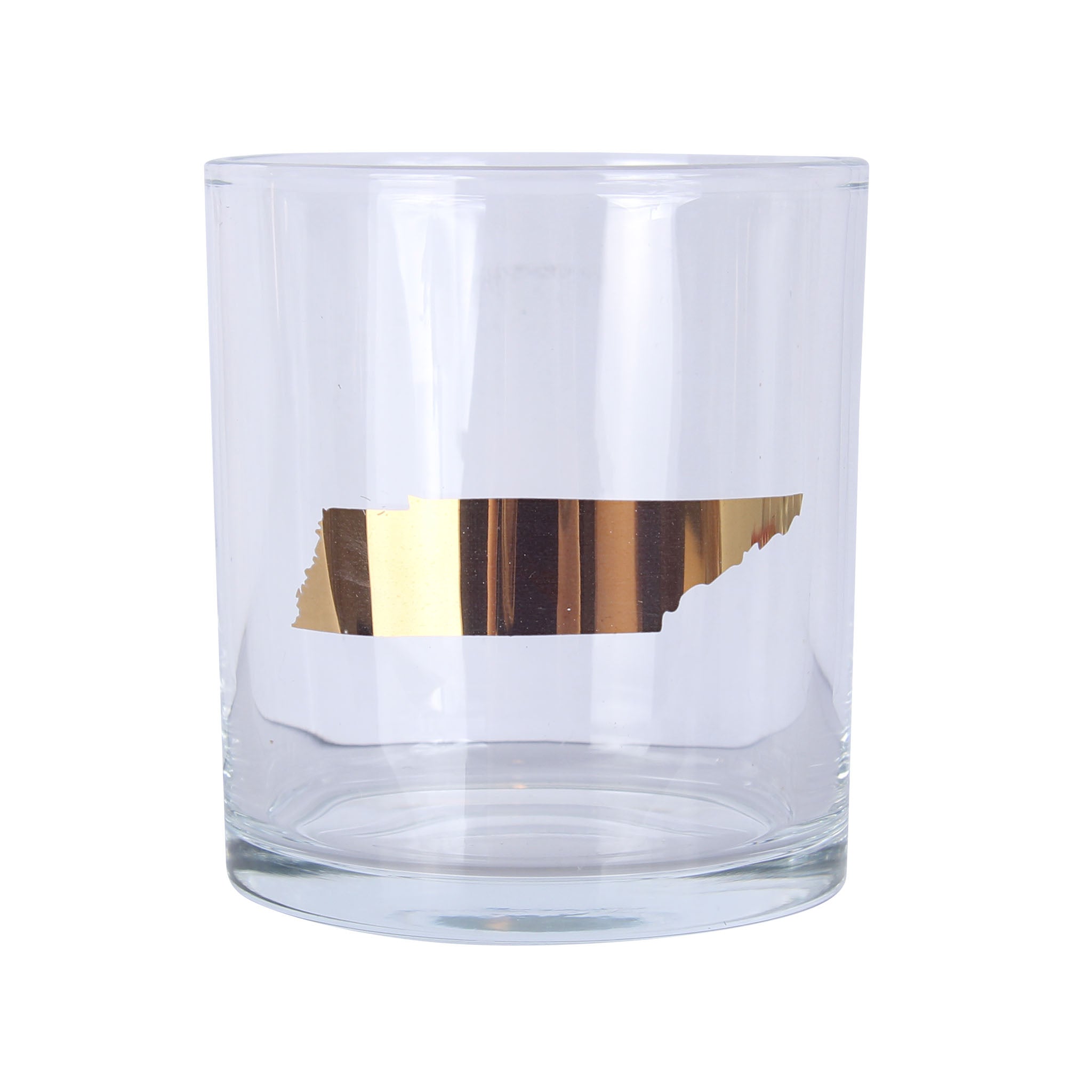 Sip in style with this charming Gold Tennessee Rocks Glass that showcases Tennessee's iconic silhouette in gleaming gold. Perfect for whiskey, bourbon, or your favorite spirit, this glass brings a touch of Southern pride to every pour. Whether you're a Tennessee native or just love the Volunteer State, this playful drinkware celebrates your connection to the South. A great gift for bourbon enthusiasts and state lovers alike.