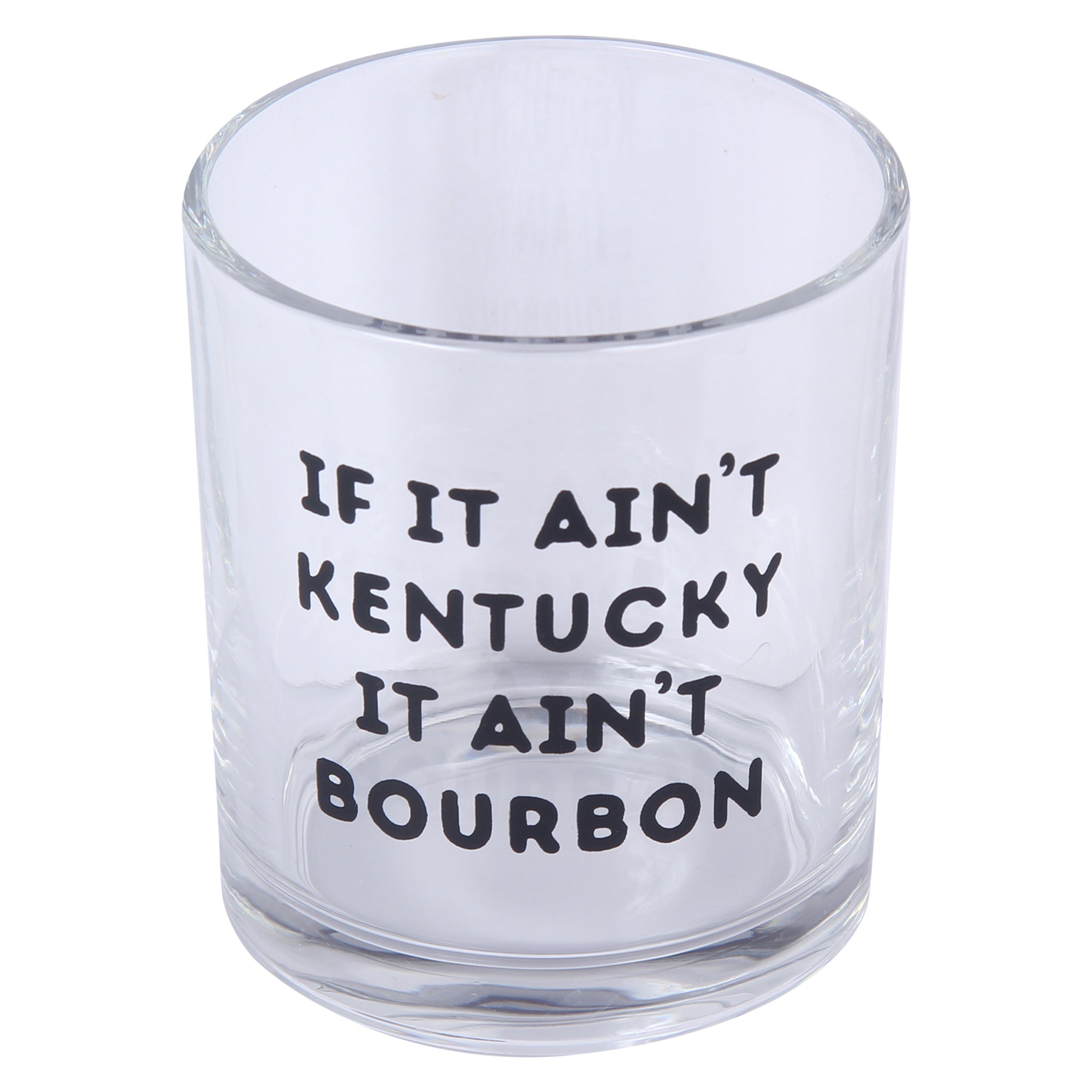 Raise a glass to bourbon authenticity with this cheeky If It Ain't Kentucky It Ain't Bourbon Rocks Glass. Emblazoned with the bold declaration "If it ain't Kentucky it ain't bourbon," it's the perfect vessel for whiskey enthusiasts who know their spirits. Whether you're sipping a premium pour or settling in for a casual evening, this glass brings personality to every drink. A great gift for bourbon lovers and a conversation starter for any home bar.