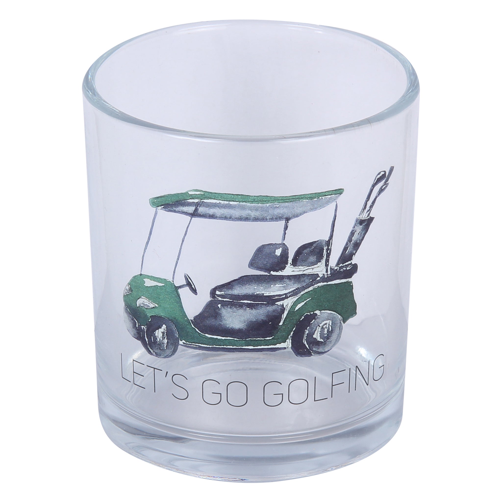 Raise a toast to your next round with this charming Let's Go Golfing Rocks Glass! Featuring a cheerful golf cart illustration and the spirited phrase "Let's go golfing," it's the perfect companion for celebrating victories on the course or enjoying your favorite spirit at the clubhouse. Whether you're a seasoned golfer or just love the sport, this playful glass brings a touch of golfing humor to every sip. A great gift for the golf enthusiast in your life.