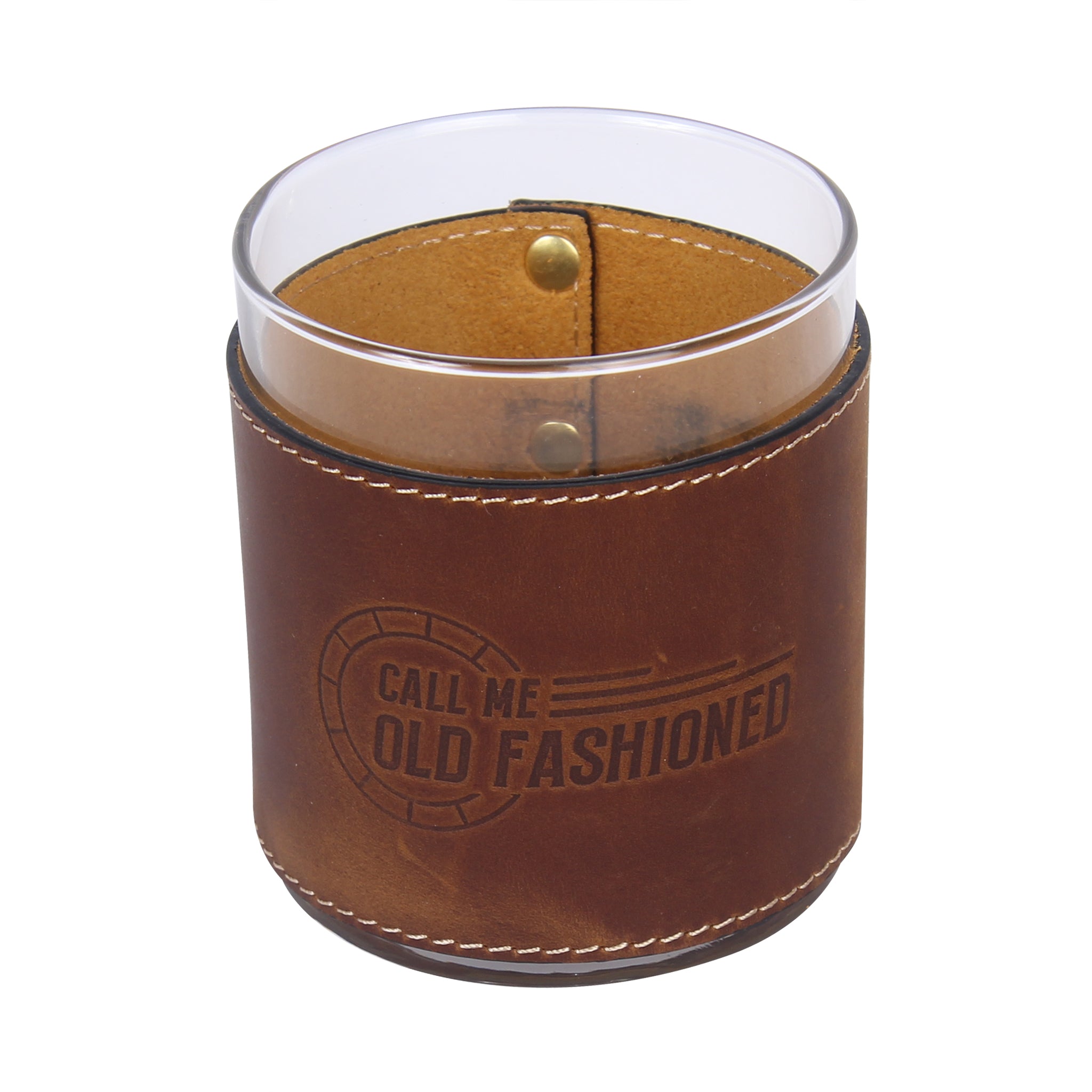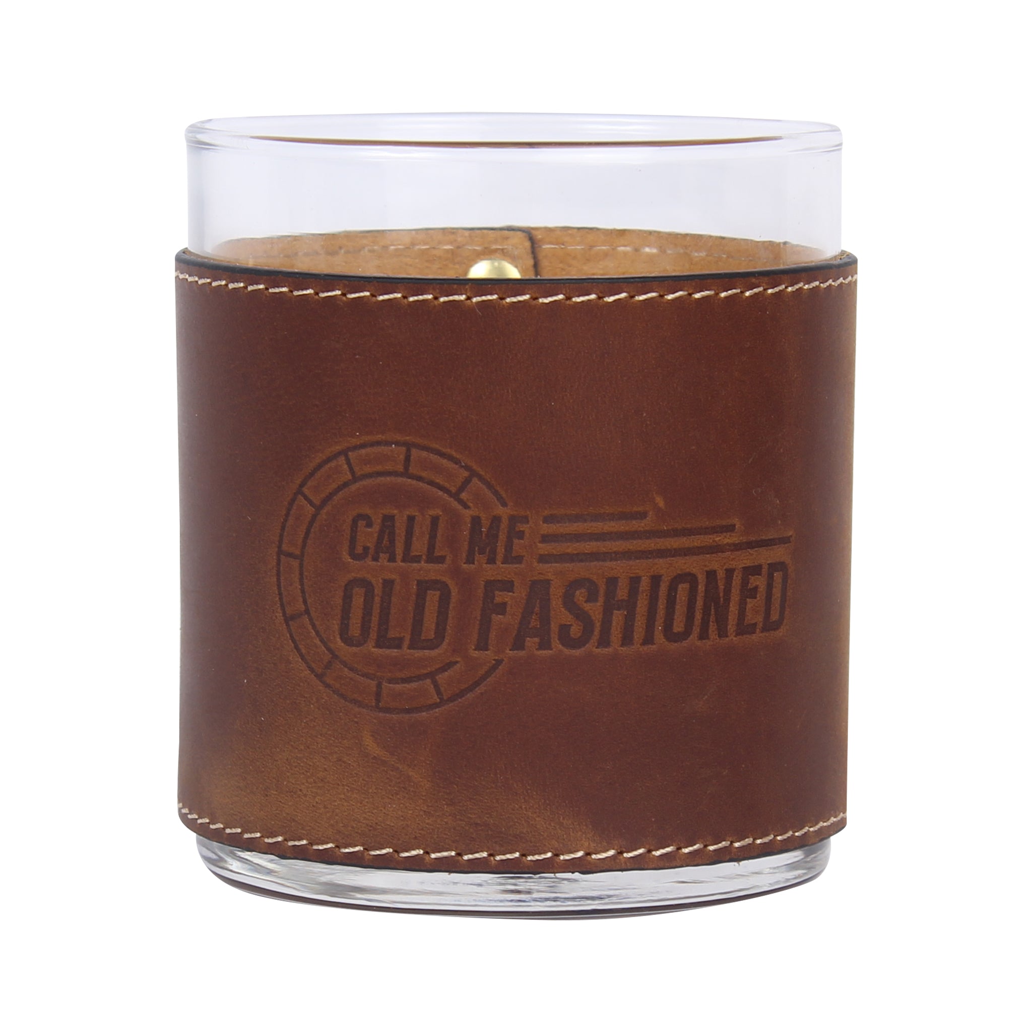 Call Me Old Fashioned Leather Rocks Glass