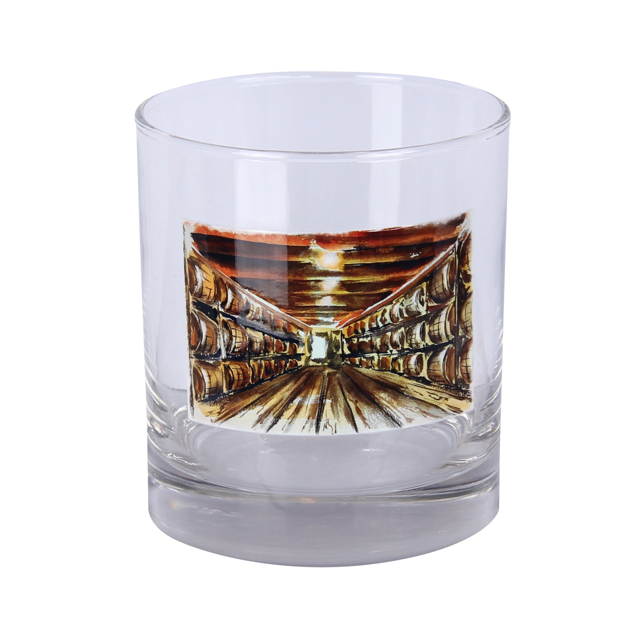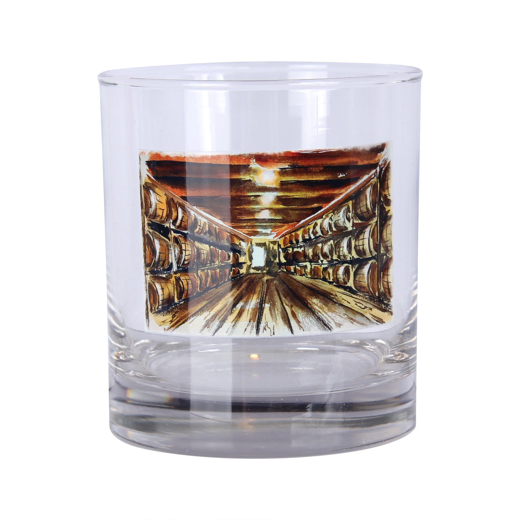 Sip your bourbon with a view—this Rickhouse Rocks Glass showcases a detailed illustration of the inside of a rickhouse, complete with barrel-lined walls and atmospheric charm. Perfect for whiskey enthusiasts who appreciate the craftsmanship behind their favorite spirit. Every pour becomes a mini tour of where the magic happens. Cheers to good taste!
