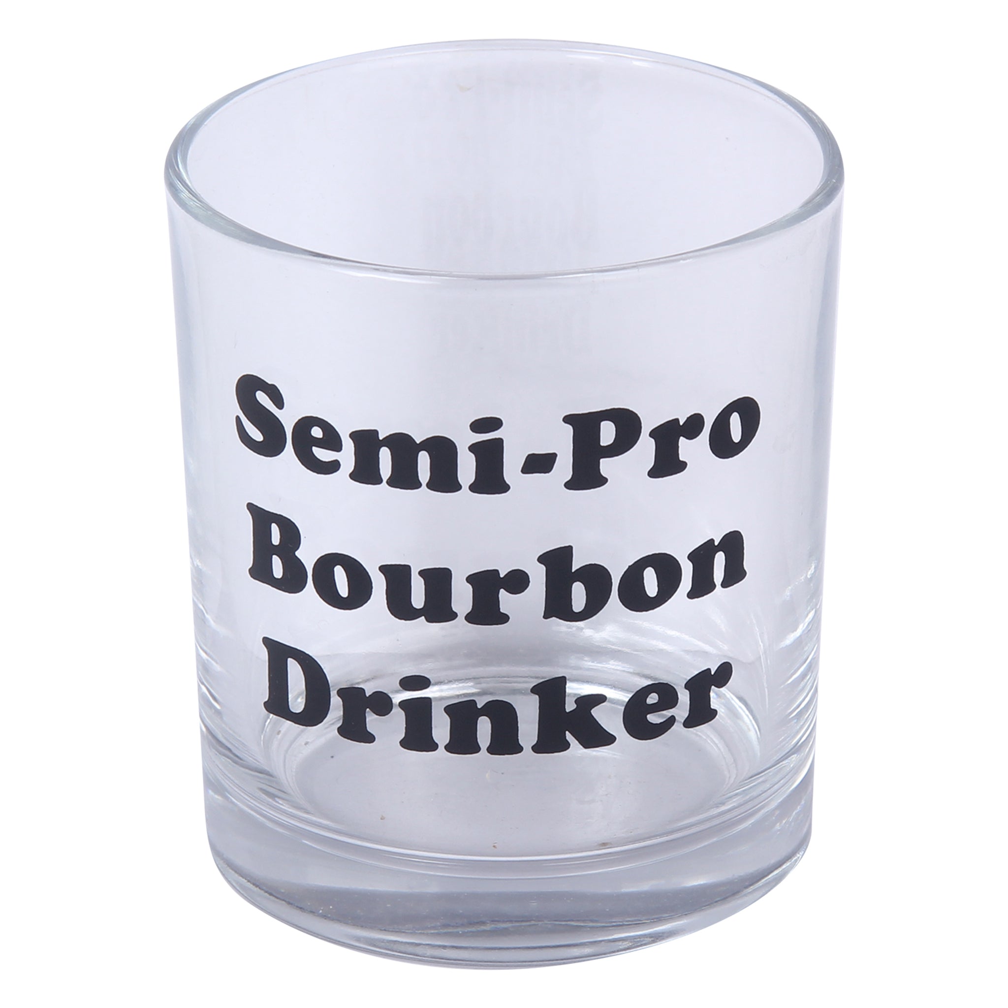 Raise a glass to your bourbon expertise with this Semi-Pro Bourbon Drinker Rocks Glass. Emblazoned with "Semi-pro bourbon drinker," it's the perfect vessel for whiskey enthusiasts who take their spirit seriously. Whether you're sipping neat, on the rocks, or crafting your signature cocktail, this playful glassware celebrates your refined taste with a touch of humor. A great gift for the bourbon lover who appreciates a good laugh alongside their good drink.