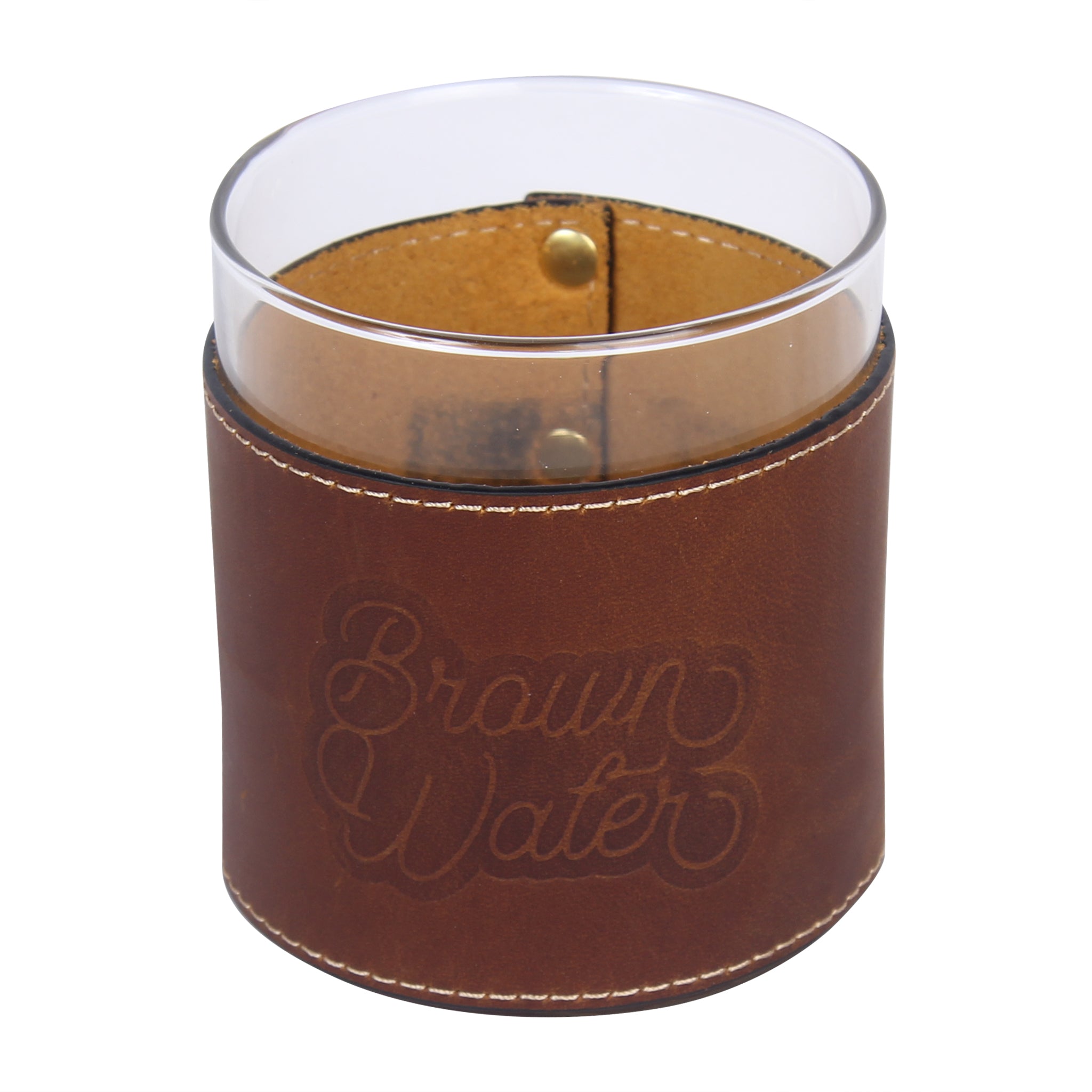 Sip your bourbon in style with this Brown Water Leather Rocks Glass that celebrates the spirit itself. Featuring the cheeky phrase "brown water"—a nod to bourbon lovers everywhere—this glass combines rugged leather craftsmanship with timeless appeal. Perfect for whiskey enthusiasts who appreciate a little humor with their pour. The durable leather wrap adds grip and character to every drink, making it an ideal gift for the bourbon aficionado in your life.