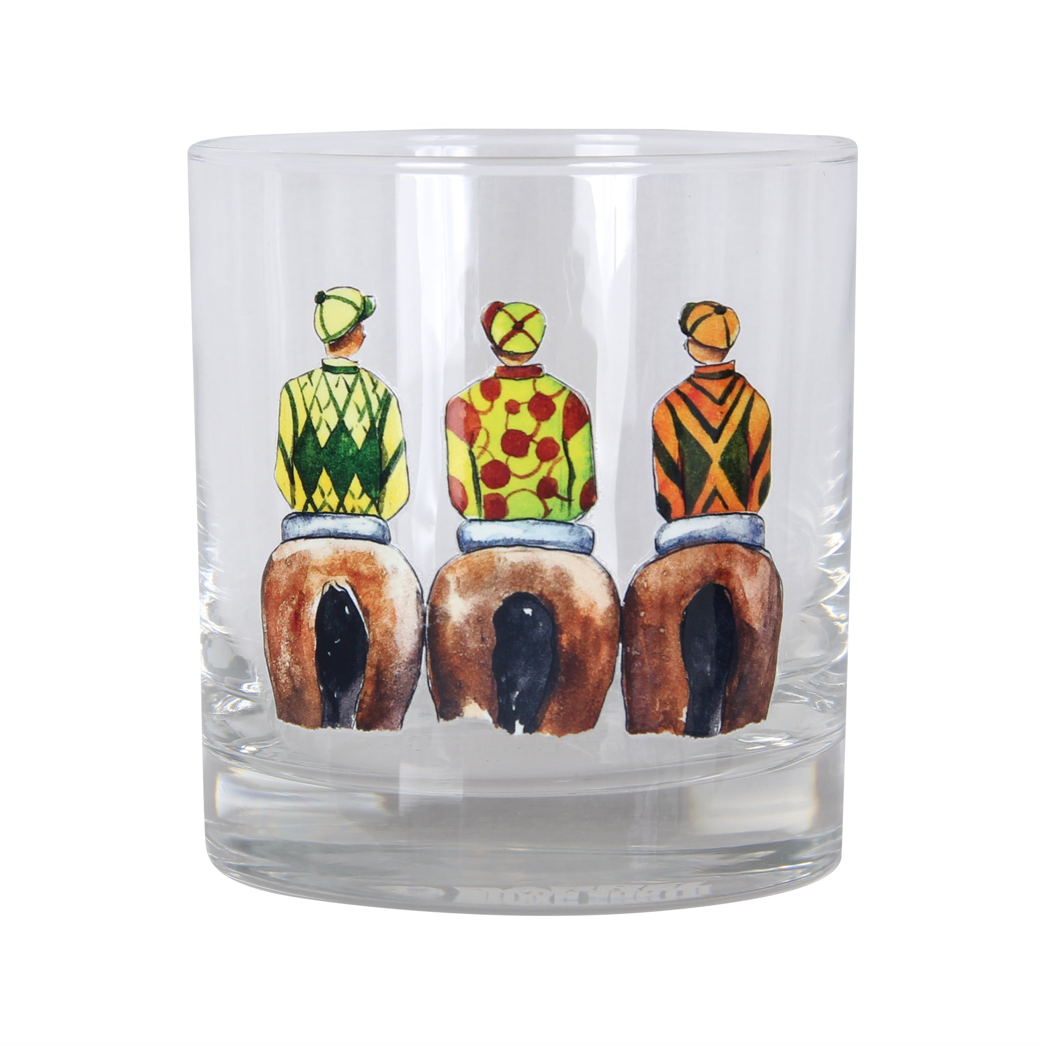 Saddle up for a spirited sip with this Thoroughbreds From Behind Rocks Glass showcasing three thoroughbred jockeys thundering down the track—captured from their dust-kicking perspective. Perfect for bourbon, whiskey, or your favorite spirit, this horse racing-themed glassware brings a touch of Derby Day charm to every pour. A must-have for equestrian enthusiasts and racing fans who appreciate a little humor with their cocktails.