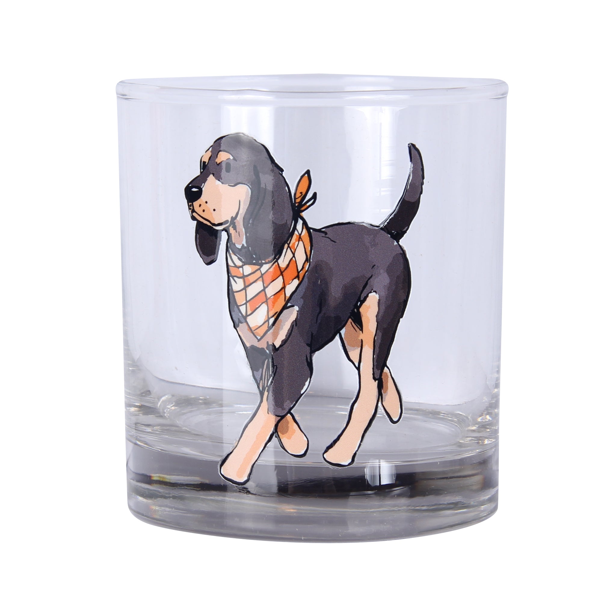 Raise a glass to Tennessee pride with this charming Walking Coonhound Rocks Glass showcasing a bluetick coonhound sporting a vibrant orange and white checkerboard bandana. Perfect for whiskey lovers and hound dog enthusiasts alike, this playful design captures the spirit of the South with every sip. Whether you're settling in for an evening on the porch or toasting with friends, this glass brings a touch of Southern charm and personality to your drinkware collection.