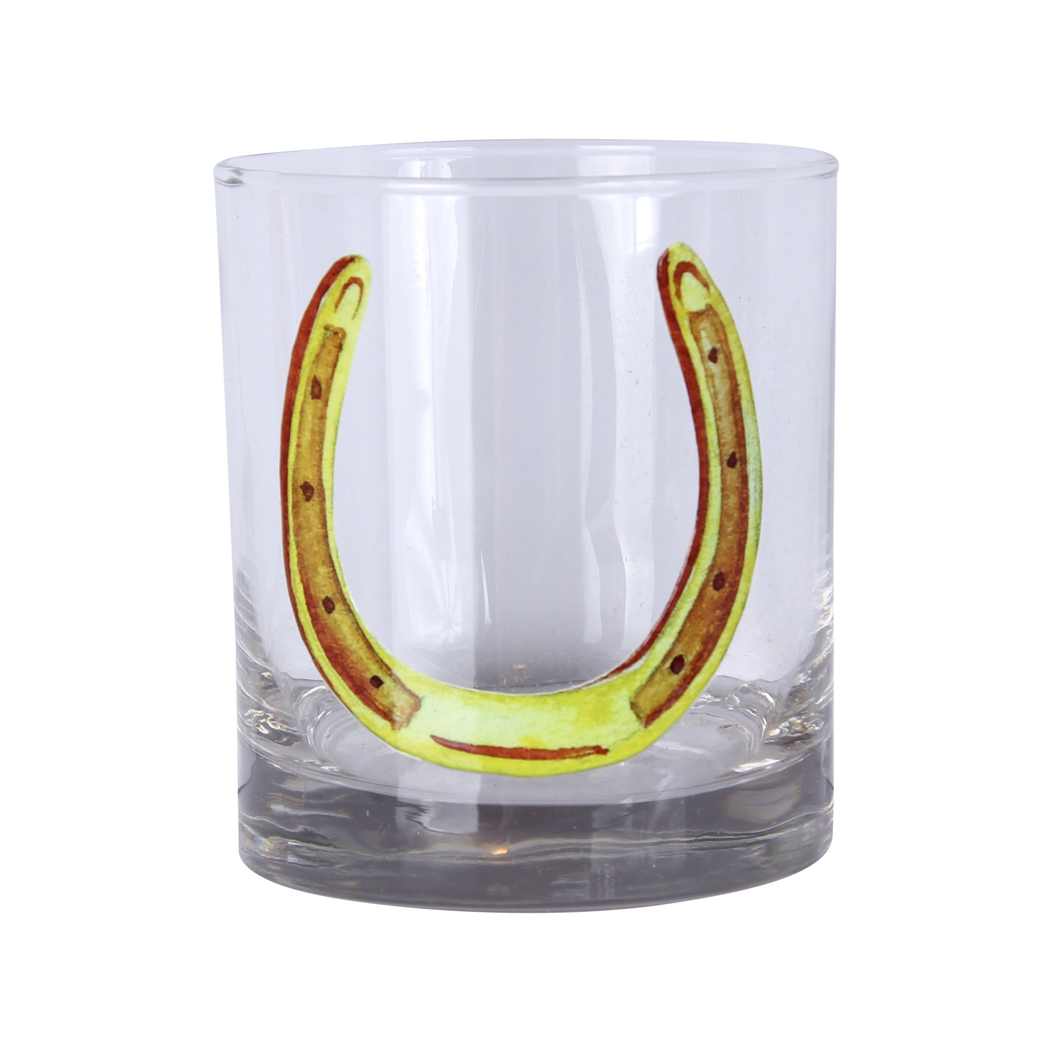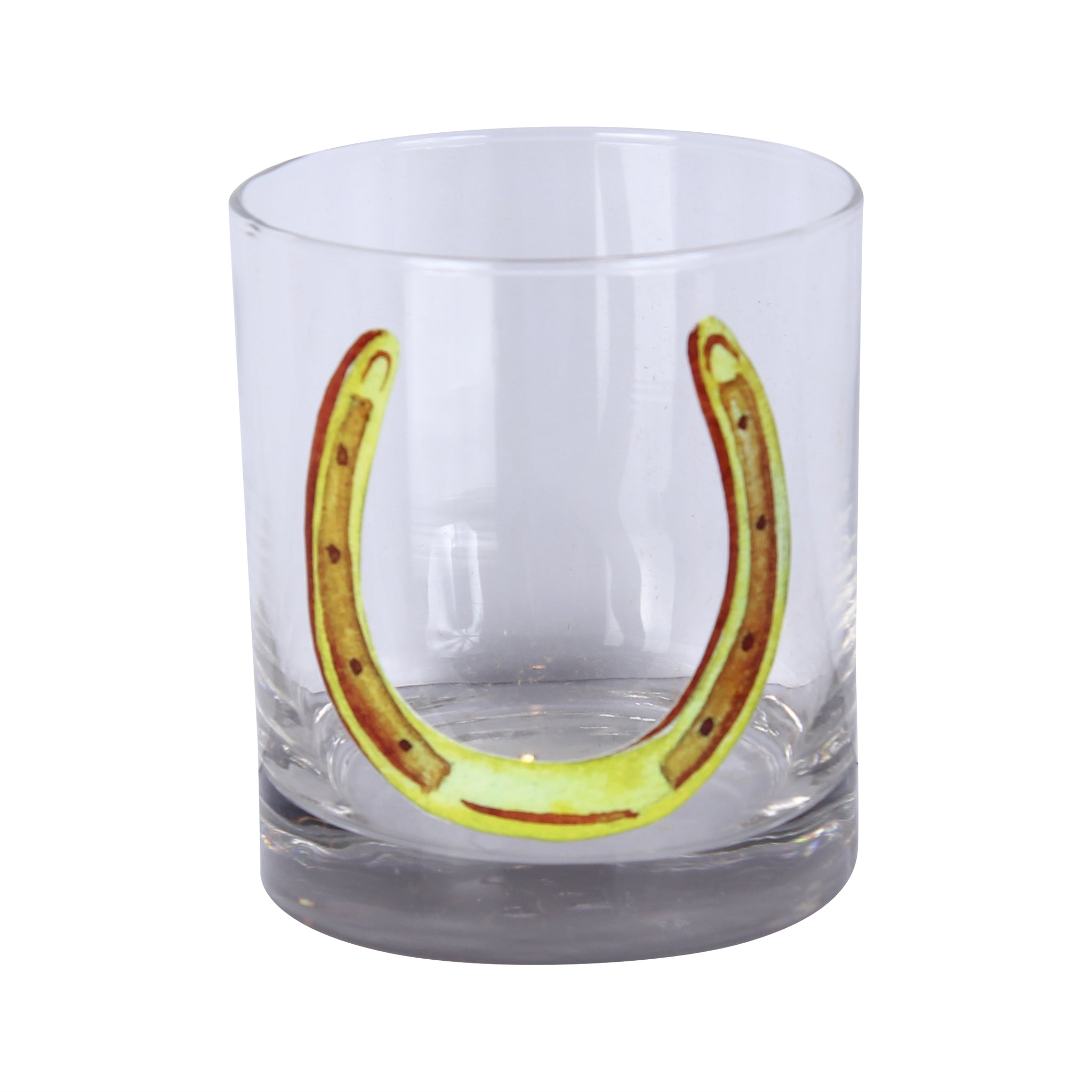 Raise a toast to good luck with this charming Yellow Horseshoe Rocks Glass showcasing a bold yellow horseshoe illustration. Perfect for whiskey, bourbon, or your favorite spirit, this glass brings a touch of Southern charm and whimsy to your drinkware collection. Whether you're a superstition believer or just appreciate quirky barware, this playful piece makes a great addition to any home bar or a thoughtful gift for the lucky person in your life.