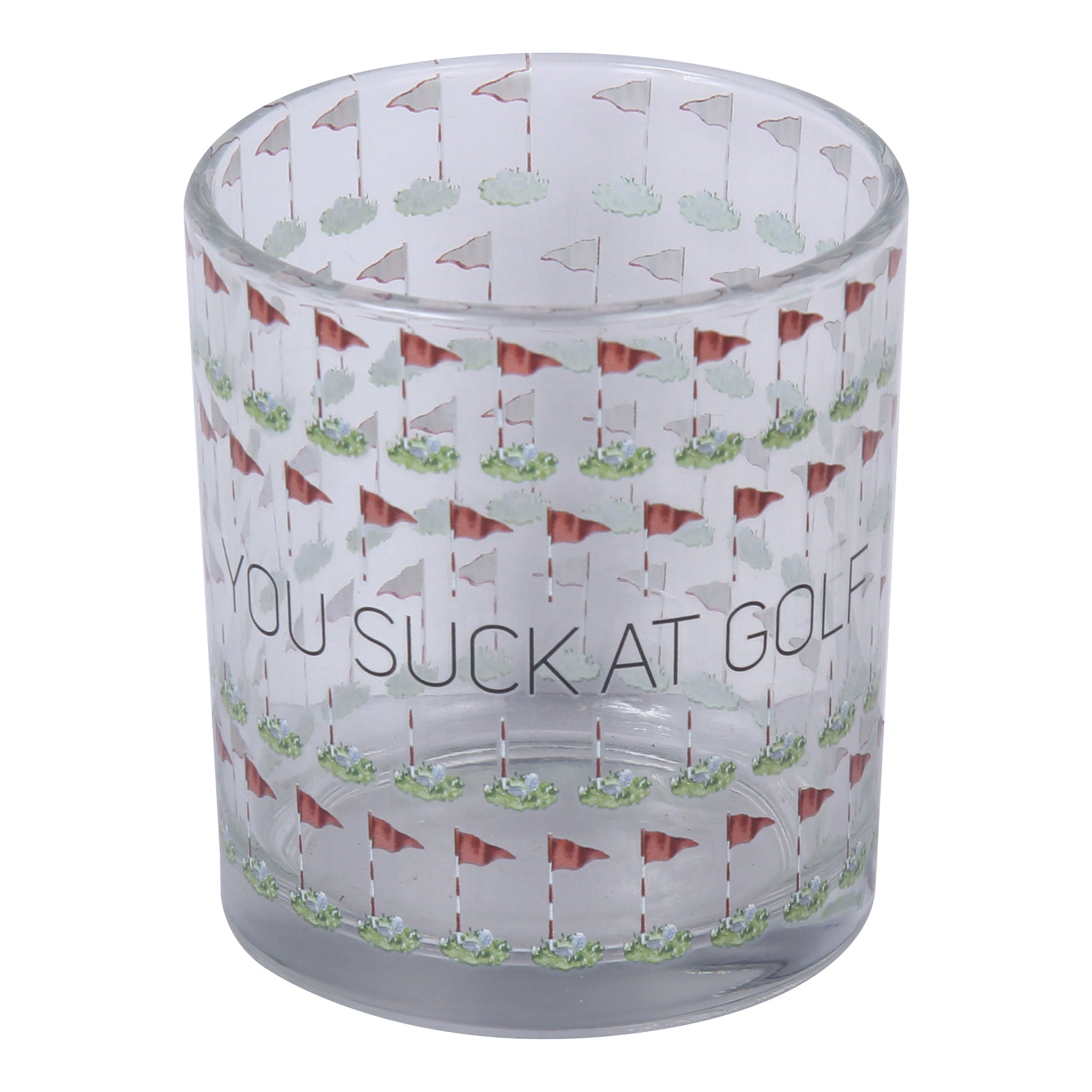 Add some humor to your next drink with the You Suck At Golf Rocks Glass. Featuring cheeky “you suck at golf” text surrounded by playful golf flag accents, this glass is perfect for golf lovers who don’t take themselves too seriously. Ideal for sipping your favorite whiskey or cocktail after a round, it’s a fun way to tease friends and celebrate the game in style.