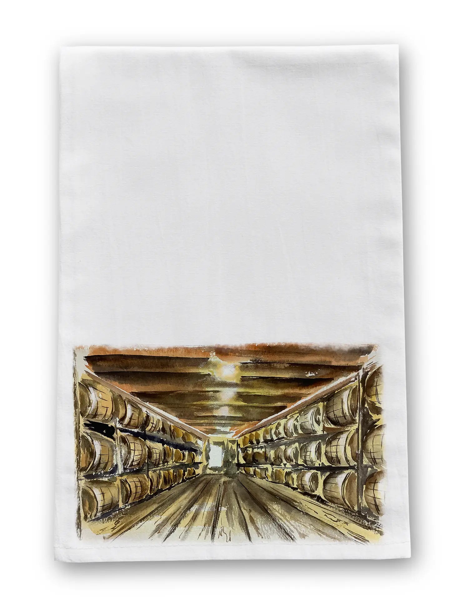 Toast to bourbon craftsmanship with this charming Bourbon Whiskey Rickhouse Tea Towel featuring an illustration of a classic bourbon rickhouse. Perfect for whiskey aficionados and Kentucky distillery fans, this design celebrates the iconic wooden warehouses where premium bourbon ages to perfection. The playful artwork brings a touch of distillery charm to your kitchen while the durable fabric handles everyday use with ease. A spirited choice for anyone who appreciates the artistry and tradition behind America's native spirit!