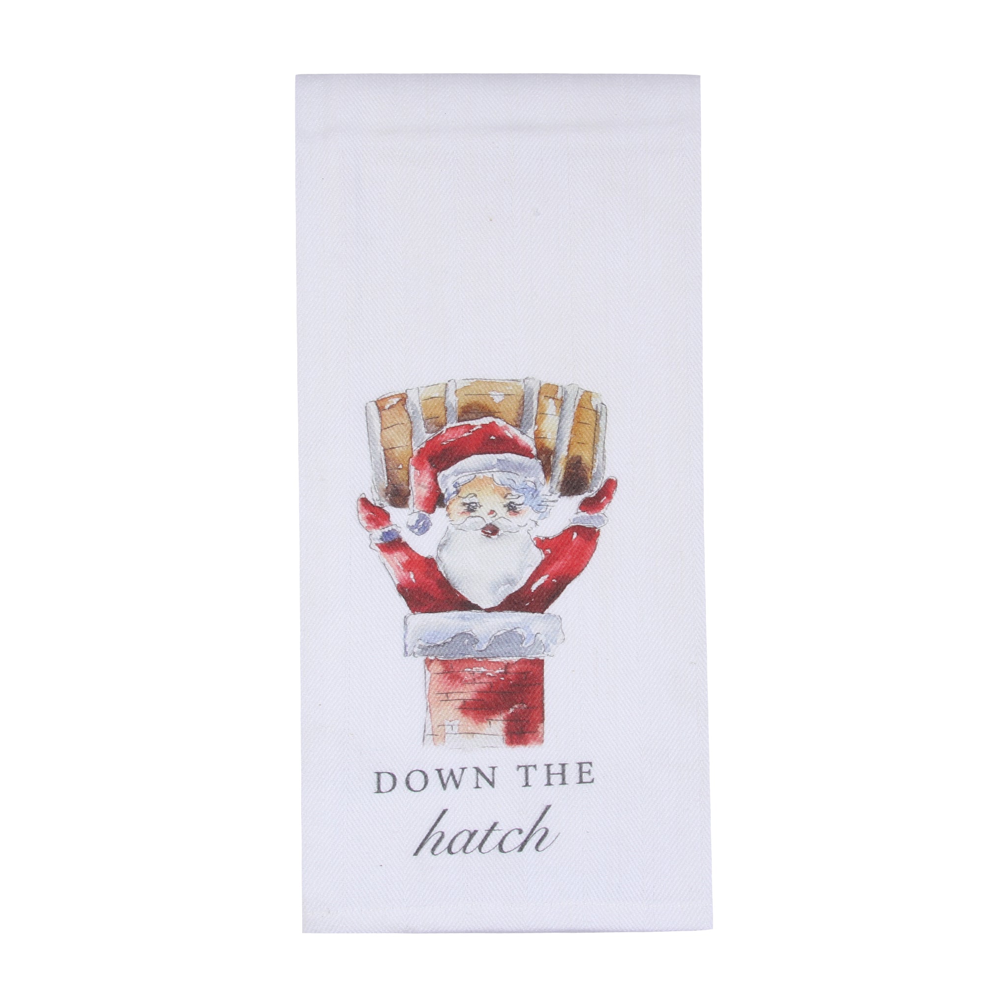 Bring a fun and festive twist to your holiday kitchen with the Down the Hatch Tea Towel. Featuring a playful illustration of Santa sliding down a chimney clutching a bourbon barrel, this towel perfectly captures the spirit of holiday cheer with a cheeky nod to bourbon lovers.
