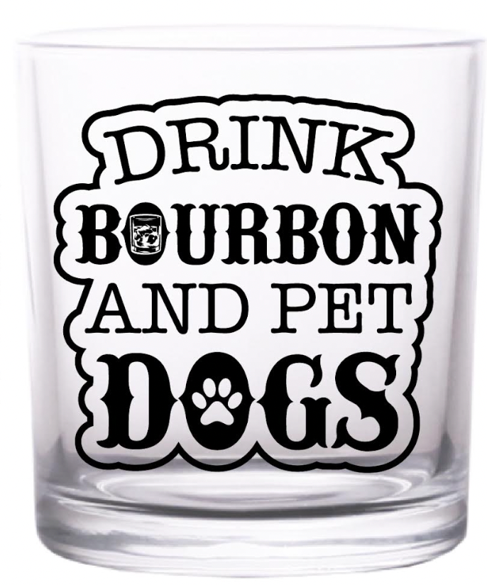 Sip your favorite spirit while celebrating two of life’s simple pleasures with the Drink Bourbon and Pet Dogs Rocks Glass. Featuring bold, playful typography and a charming paw print detail, this design pairs humor with classic barware style—making it a must-have for dog lovers and bourbon fans alike.