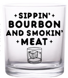 Sippin' Bourbon and Smokin' Meat Rocks Glass