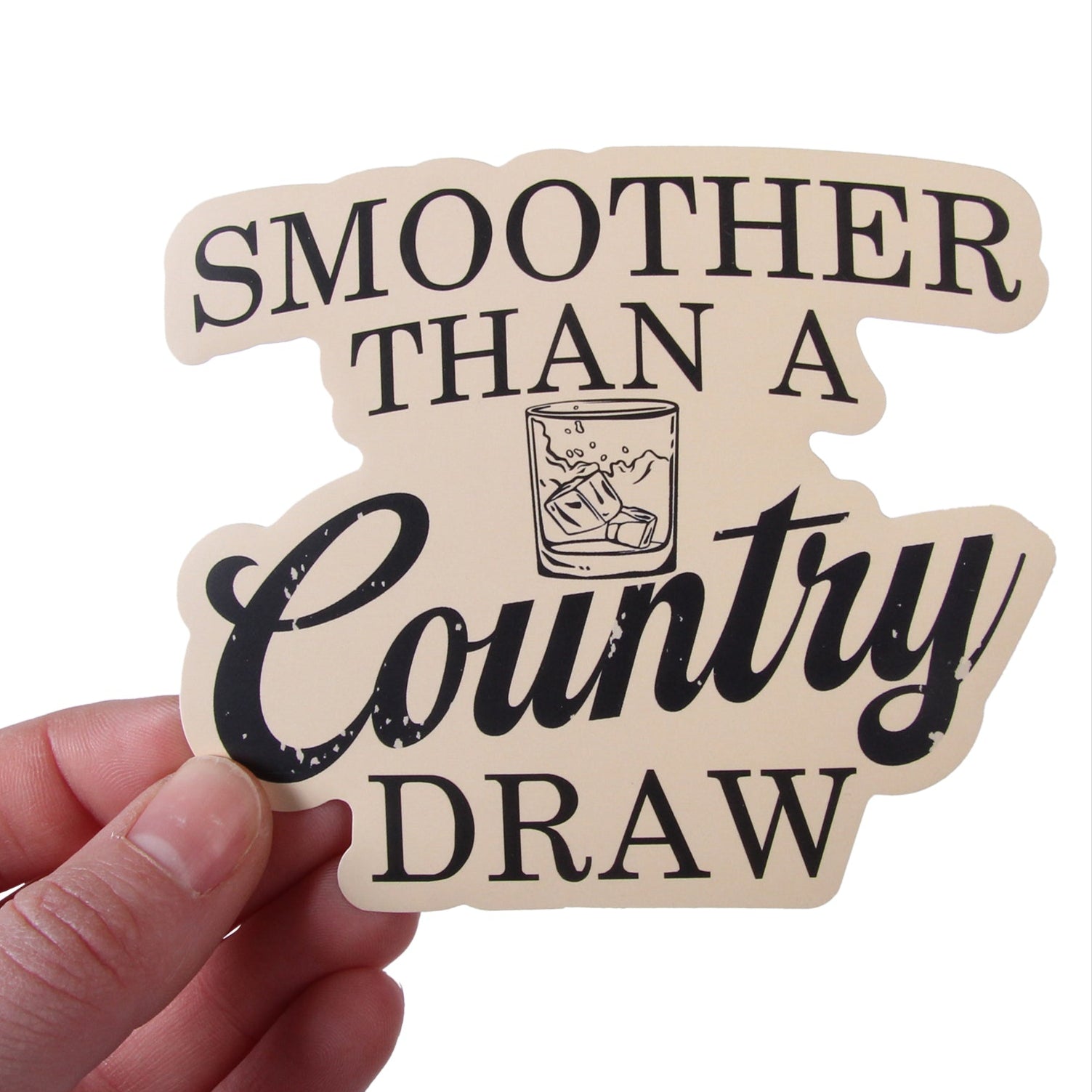 Celebrate smooth sipping with this fun Smoother Than A Country Draw Sticker featuring the phrase "Smoother Than A Country Draw" and a charming bourbon glass illustration. Perfect for personalizing your tumbler, cooler, laptop, or anywhere else you want to show off your love for quality spirits and Southern charm. Weather-resistant and durable, this sticker brings a touch of humor and style to any surface. A must-have for bourbon enthusiasts and country lovers alike.
