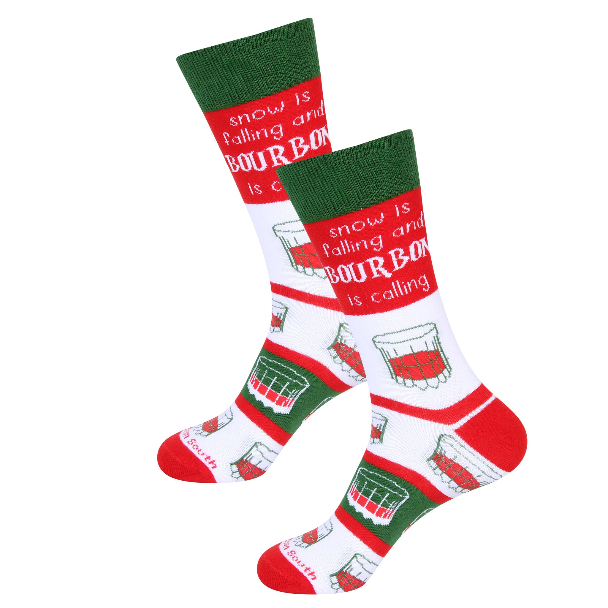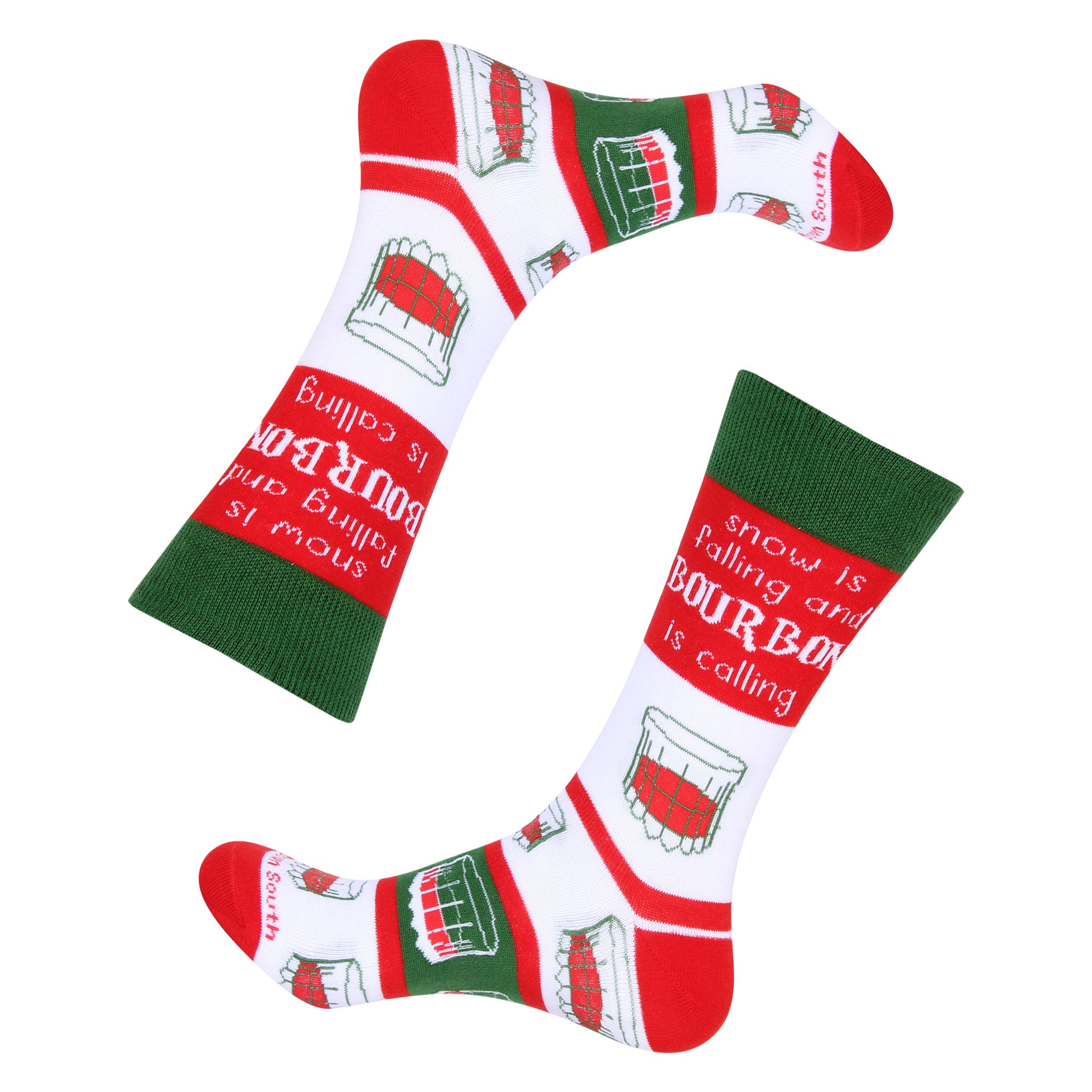 Snow is Falling And Bourbon Is Calling Red/Green/White Socks
