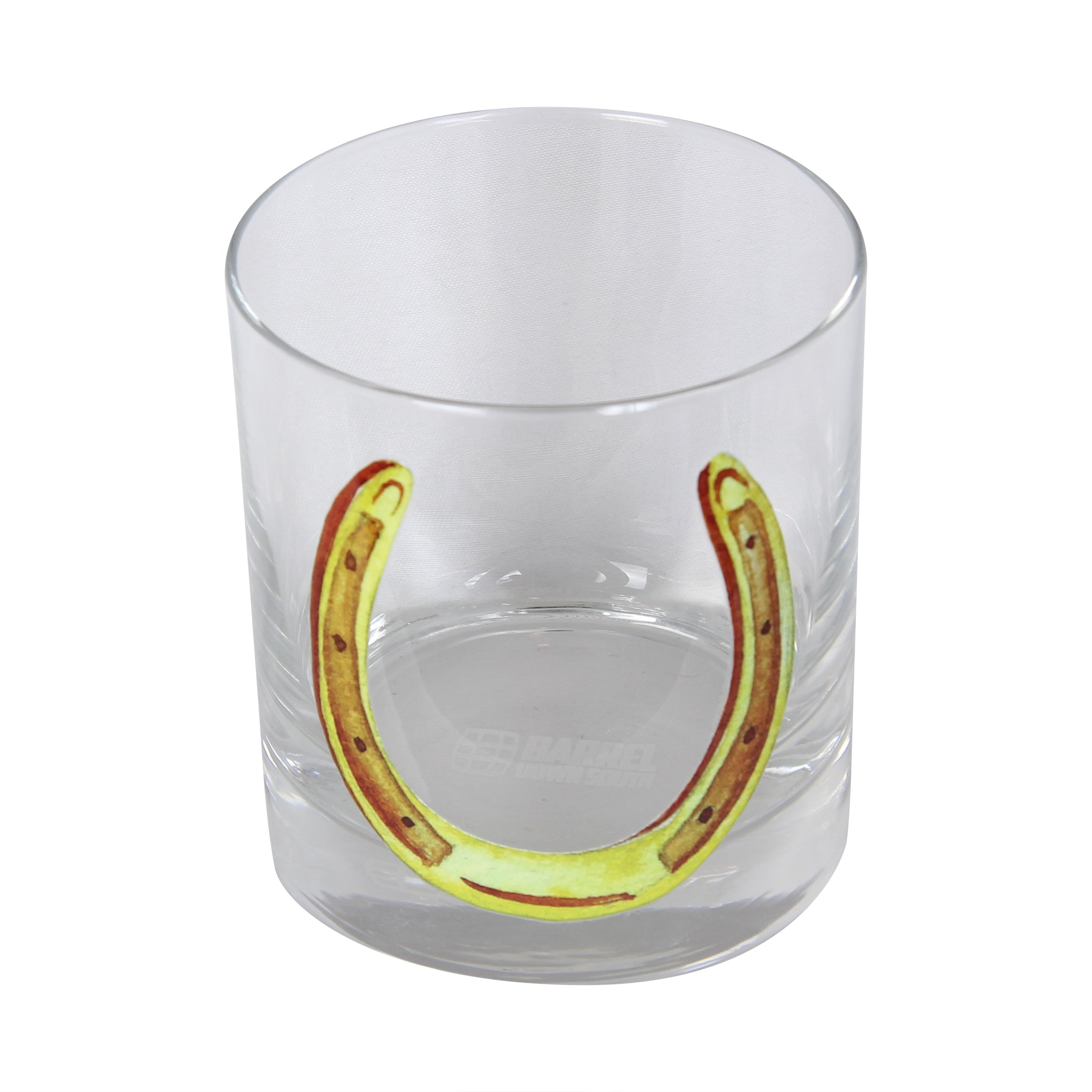 Our Yellow Horseshoe Rocks Glass features a bold watercolor-style horseshoe design that brings classic equestrian charm to your bar cart. Simple, timeless, and full of race day spirit, this glass is perfect for bourbon, whiskey, and your favorite cocktails from Derby parties to everyday sipping.