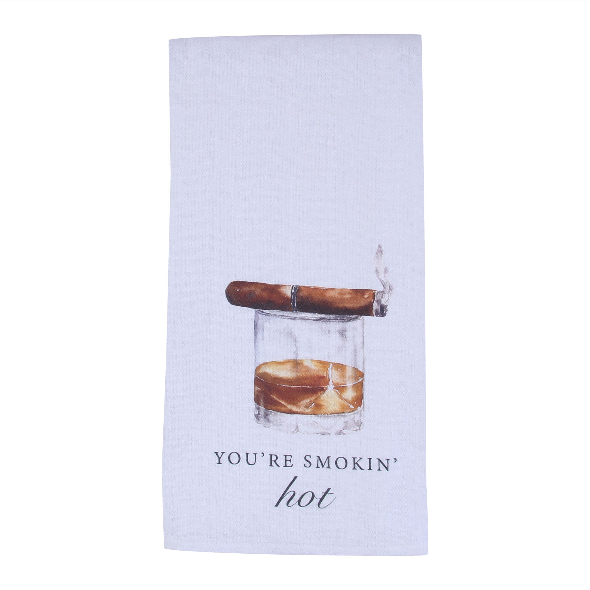 Add a bold splash of heat to your bar or kitchen with our You’re Smokin’ Hot Bourbon Tea Towel, featuring a smooth glass of bourbon on the rocks and a classic cigar illustration. This cheeky, Southern-inspired towel is the perfect blend of witty charm and whiskey sophistication, ideal for bourbon drinkers, cigar lovers, and those with a fiery sense of humor. Whether it’s hanging on your home bar, dressing up your bourbon cart, or gifting someone special, this towel is a fun and functional tribute to good taste and great pours.
