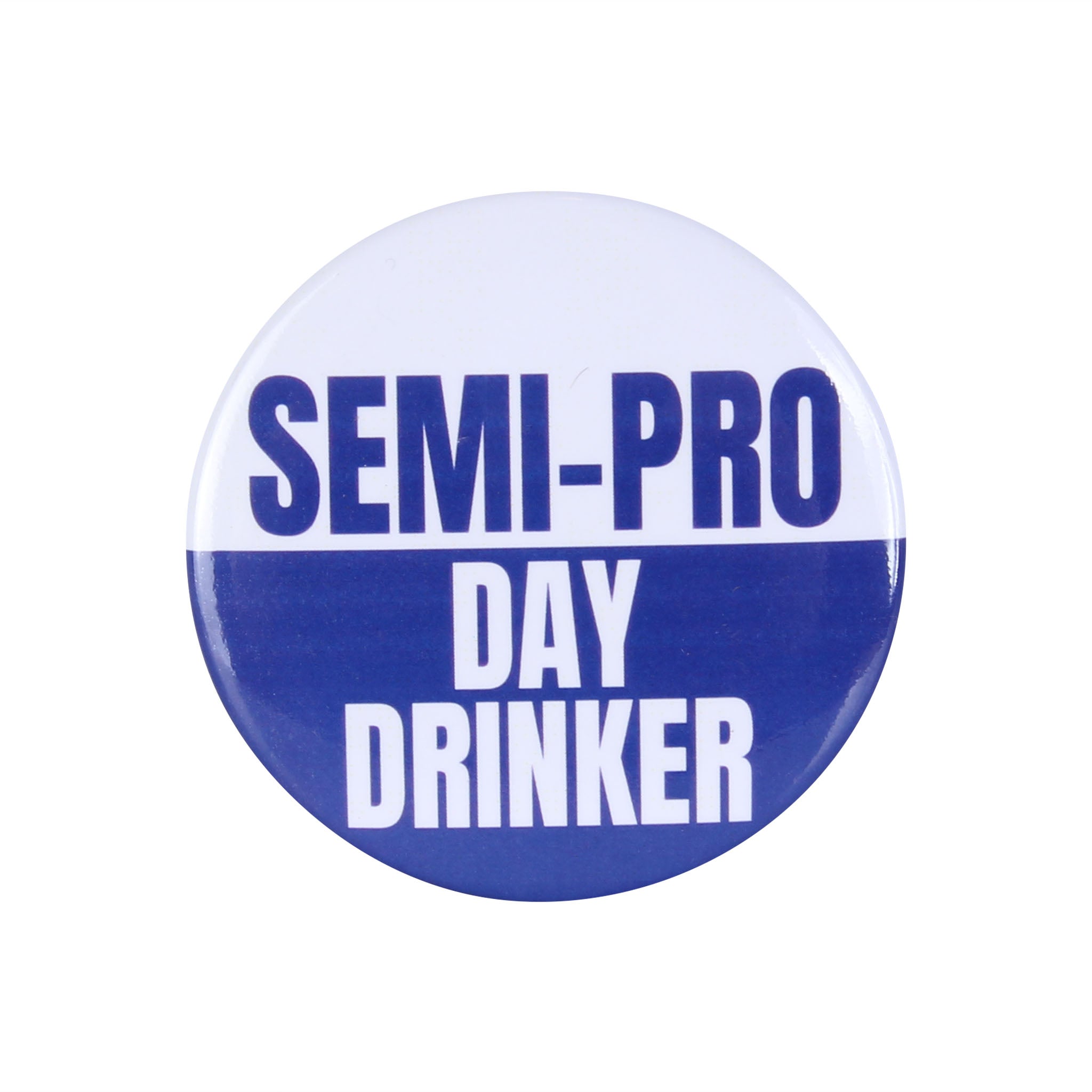 Show off your tailgating spirit with this Blue/White Semi-Pro Day Drinker Button Pin. Perfect for game days in KY, it adds a fun, playful touch to your outfit while letting everyone know you’re here to enjoy the day. Lightweight and easy to wear, it’s a great conversation starter for fans who take their day drinking semi-seriously.