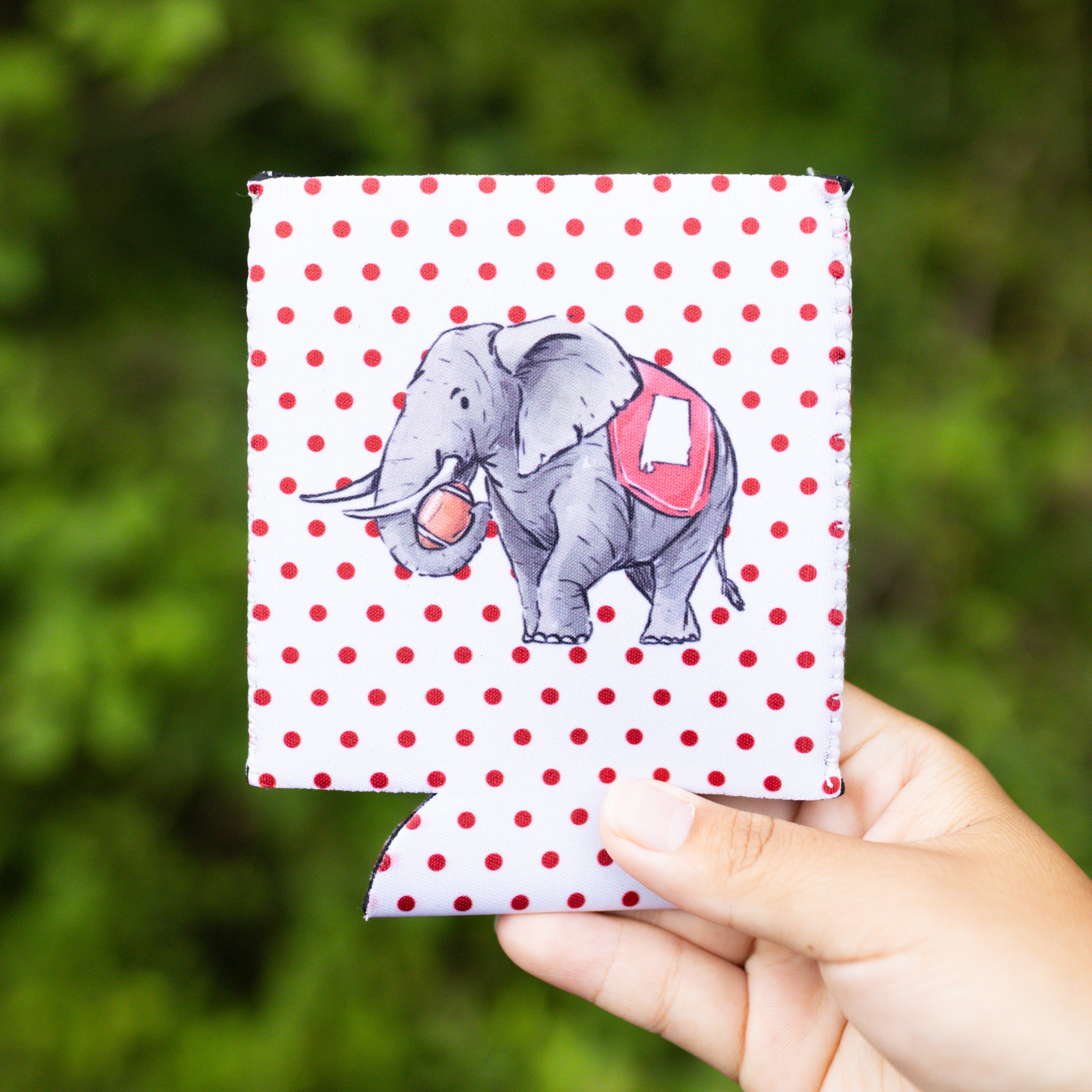 Red Polka Dot Elephant Can Cooler