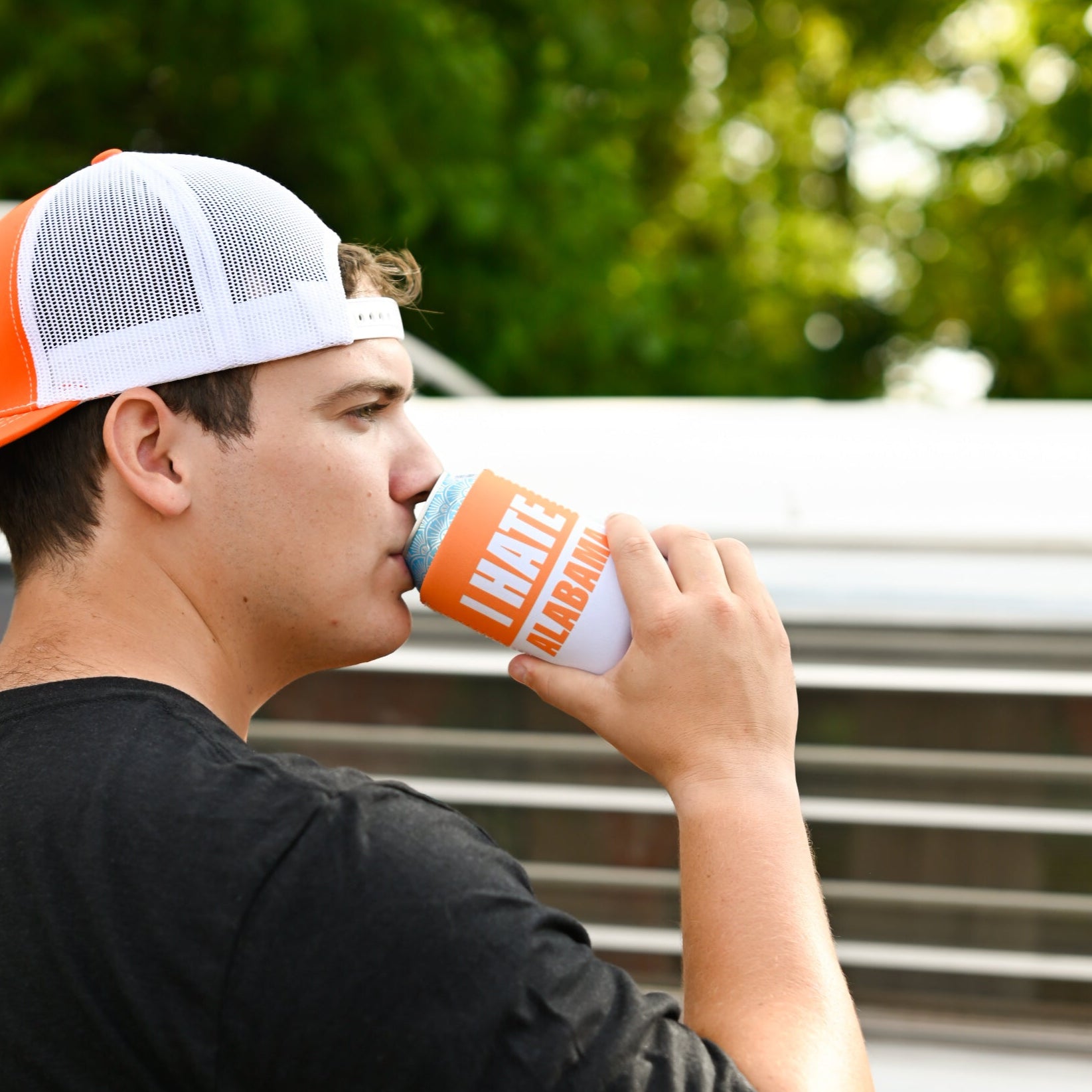 Orange/White I Hate Alabama Can Cooler